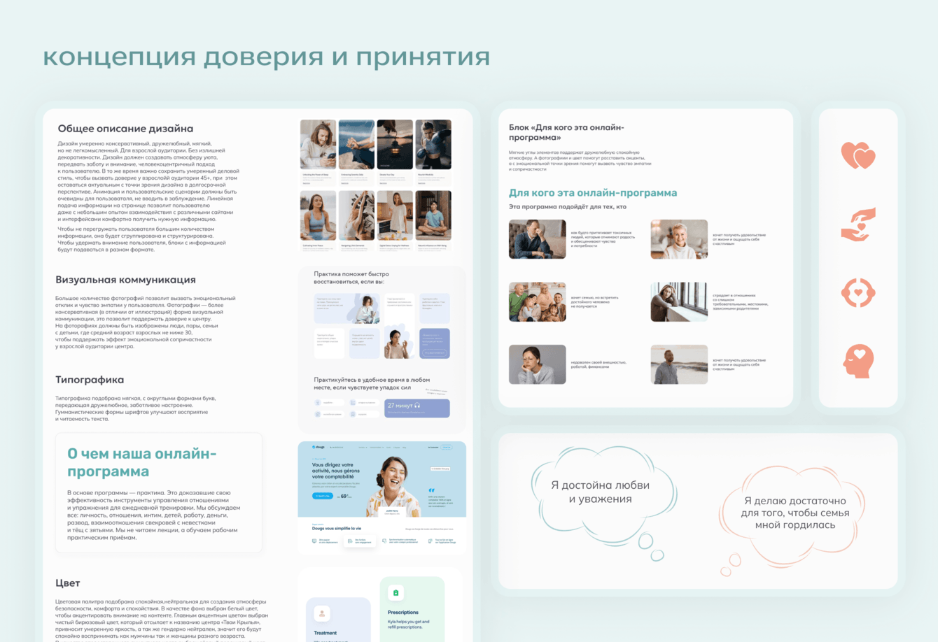 Важно было не просто рассказать о программе, а показать, как может измениться жизнь человека. Мы сделали акцент на визуальном оформлении: фотографии людей, переживающих схожие эмоции, крупные заголовки, которые чётко формулируют страхи и сомнения. Всё это создаёт ощущение, что человек не один в своих переживаниях, и выход есть.