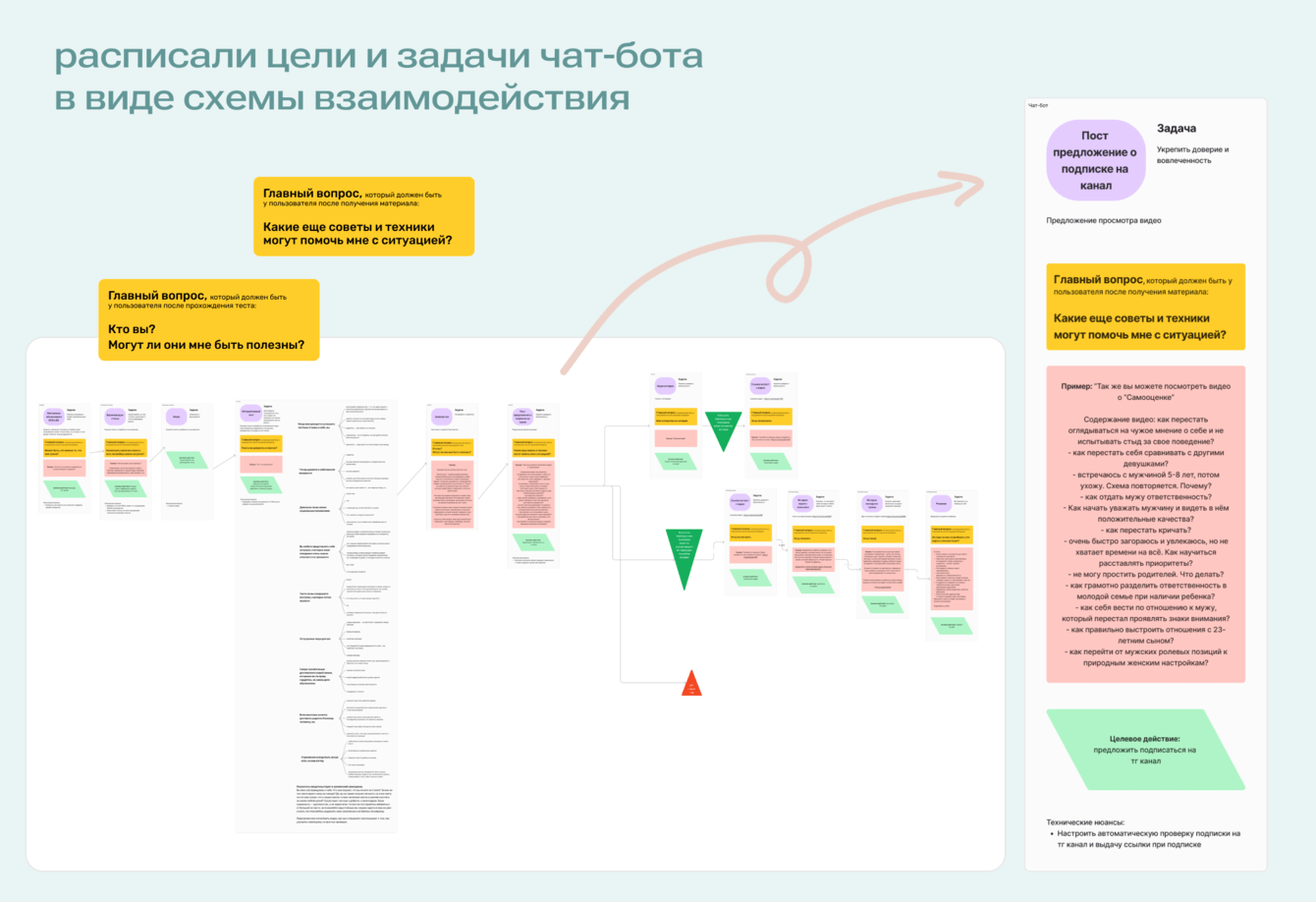 Наш опыт работы другими с психологическими проектами сильно помогал на этом этапе. Мы уже проводили масштабное JTBD-исследования рынка психологических услуг. Из него было понятно, что люди не сразу решаются на работу с психологом — им нужно время, чтобы осознать проблему, изучить кейсы о похожих психологических травмах и поверить в эффективность метода. Поэтому важным элементом стало создание системы глубокого взаимодействия с пользователем на всех этапах.