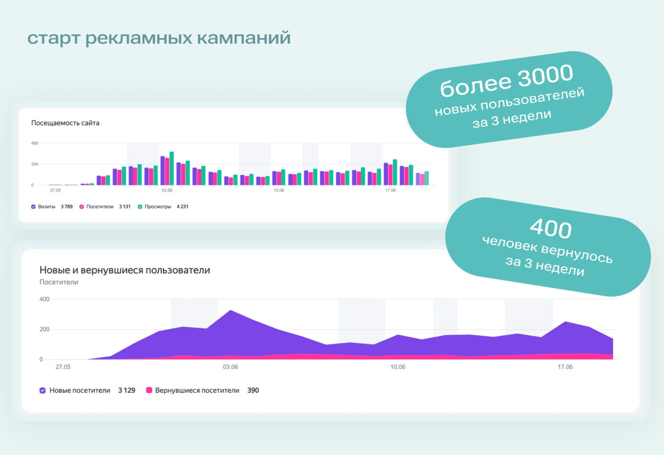 Такой подход позволил выстроить многоуровневую стратегию вовлечения. Мы создавали систему, где пользователи постепенно знакомились с центром, проходили этап осознания и подходили к покупке уже с высоким уровнем доверия.