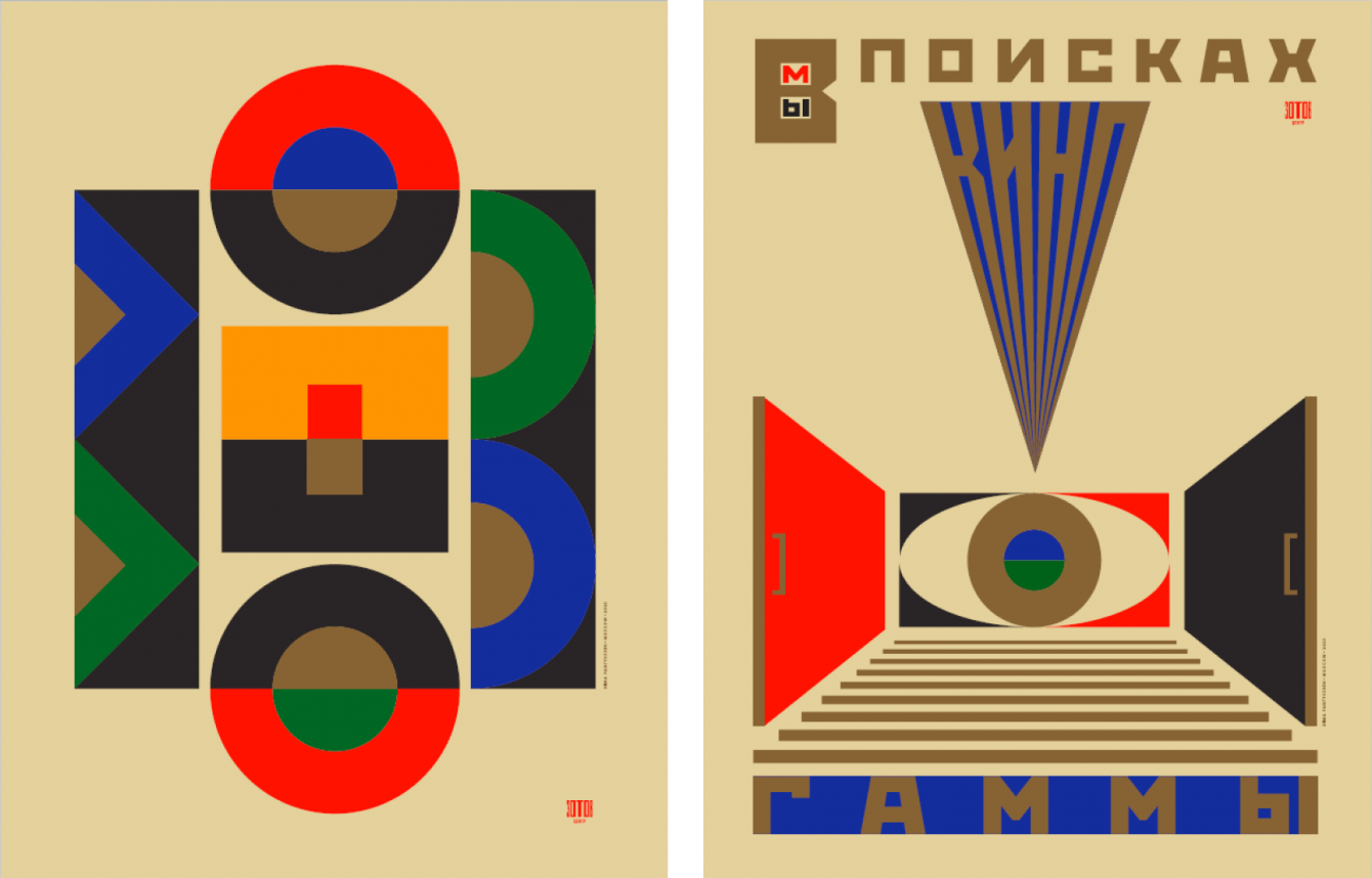 Для отдельной линейки мерча художник нарисовал два плаката, в которых тема авангарда и конструктивизма раскрывается сквозь призму современности. Каждое изображение Дмитрий Пантюшин наделил смыслом. Первое отсылает к образу кинозала, где зритель становится героем кино о новом, неизведанном мире, второе носит декоративную функцию — в нем четкие линии и формы вместе с насыщенными цветами образуют идеально симметричную композицию. Каждый плакат выполнен в технике «жикле», которая позволяет добиться максимально высокого качества художественной работы при печати.