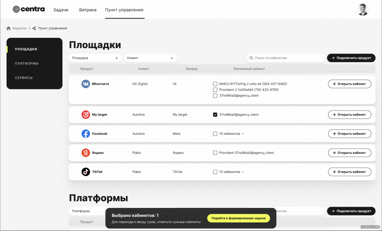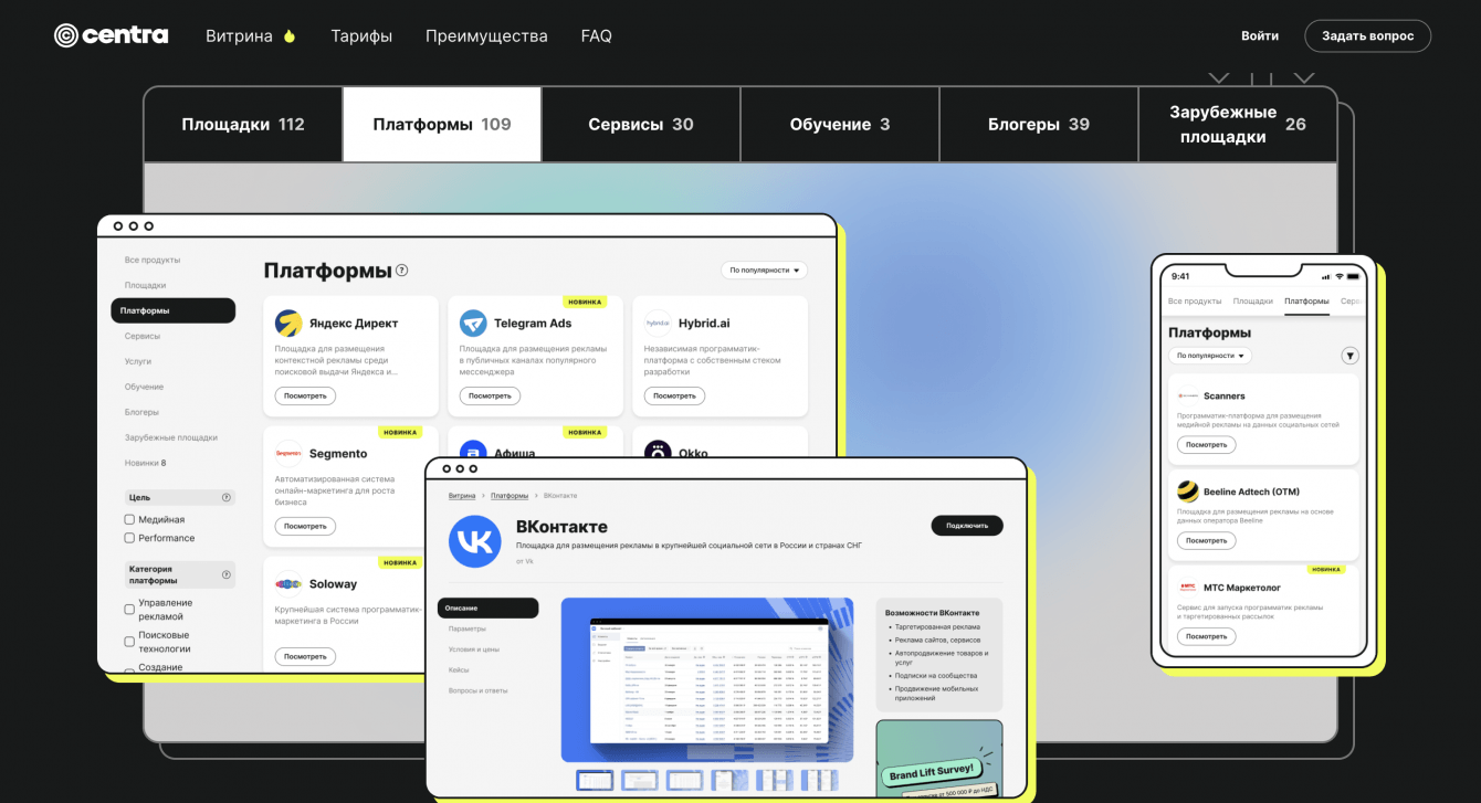 - В Centra доступны 300+ площадок. Проект упростил и ускорил выбор площадок для размещения рекламы.