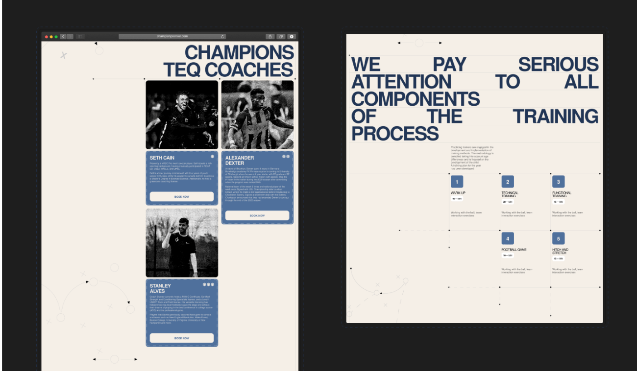 Добавили блок с расписанием как будет проходить тренировка, что они не просто играют на поле, а у них есть: