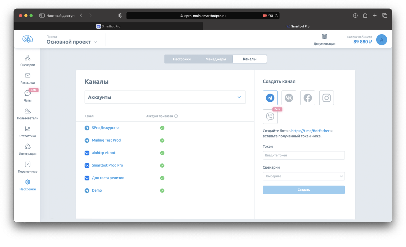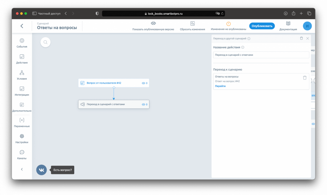 В основе проекта - решение SmartBot Pro компании KTS. На момент старта это был конструктор сценариев для чат-ботов в VK, а в процессе внедрения команда продукта интегрировала чат-бота с нашей чат-платформой. Таким образом мы получили платформу с low-code интерфейсом, который позволяет быстро создавать новые сценарии без привлечения разработчиков и подконтрольно влиять на вероятность распознавания.