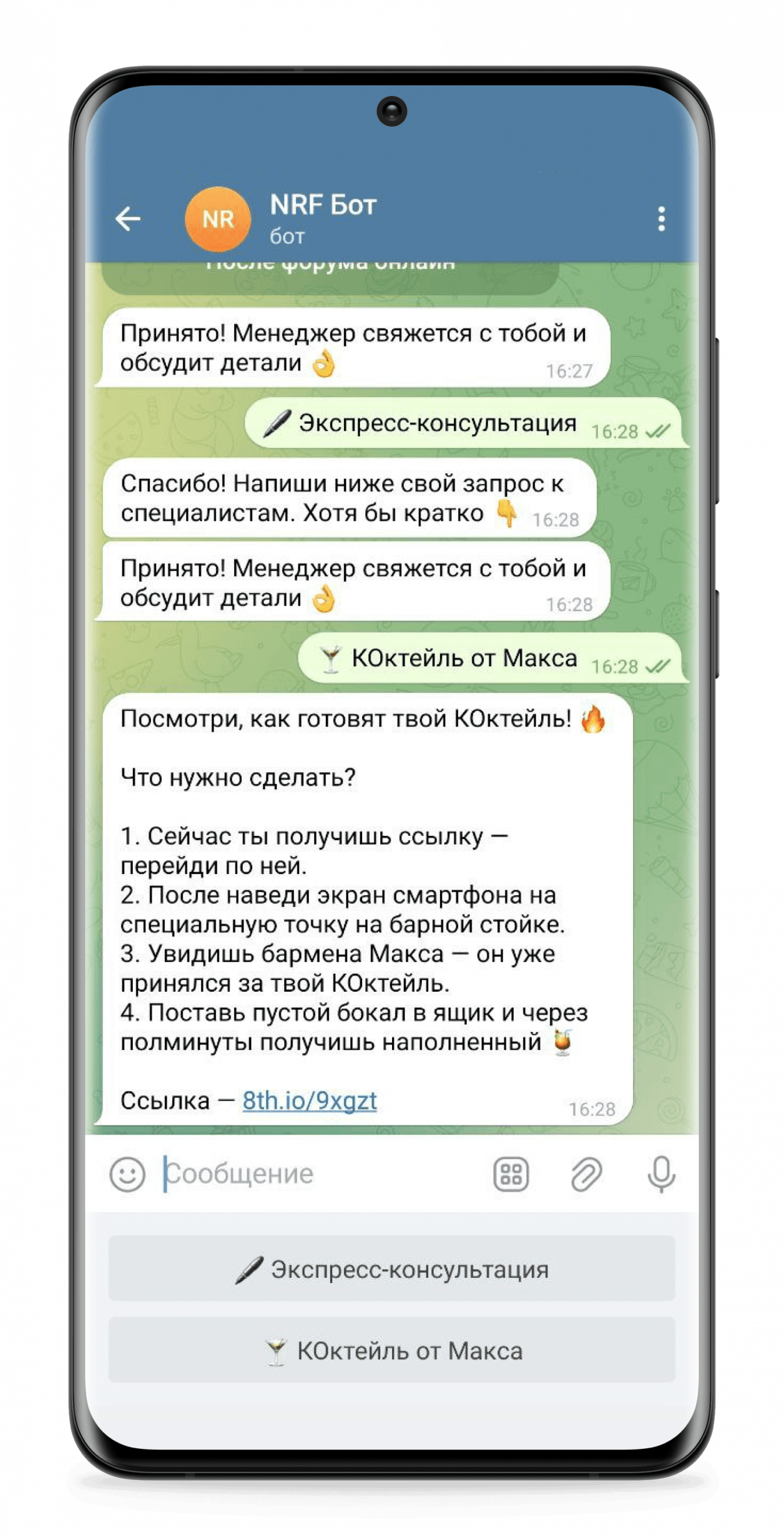 Пользователи могли с помощью чат-бота получить бесплатный коктейль.