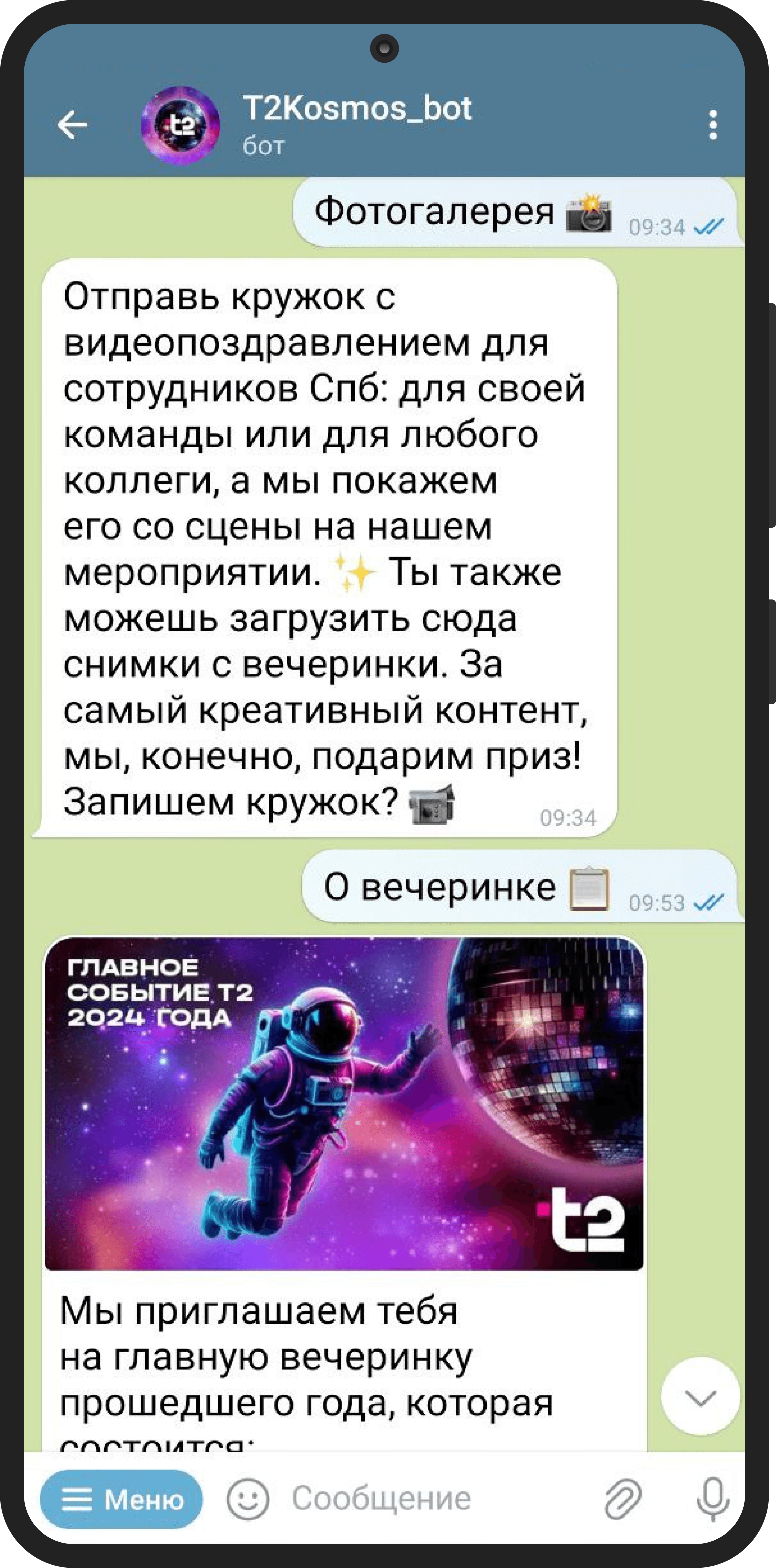 Разрабатываемый нами чат-бот должен был стать главным помощником в организации новогоднего торжества. Мы хотели, чтобы с его помощью: