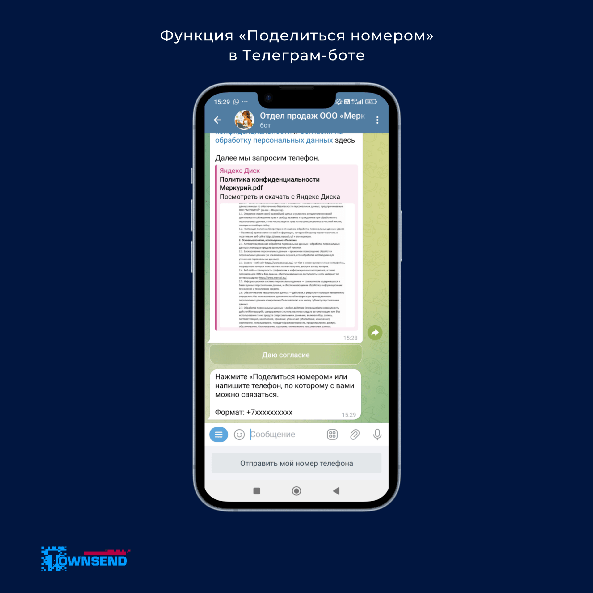 — Используется отличительная функция мессенджера: подписчик может не вводить вручную свой телефон, а поделиться номером, к которому привязан аккаунт в Телеграм, с помощью нажатия на одну кнопку. Верификация номера не требуется, так как он уже проверен мессенджером.