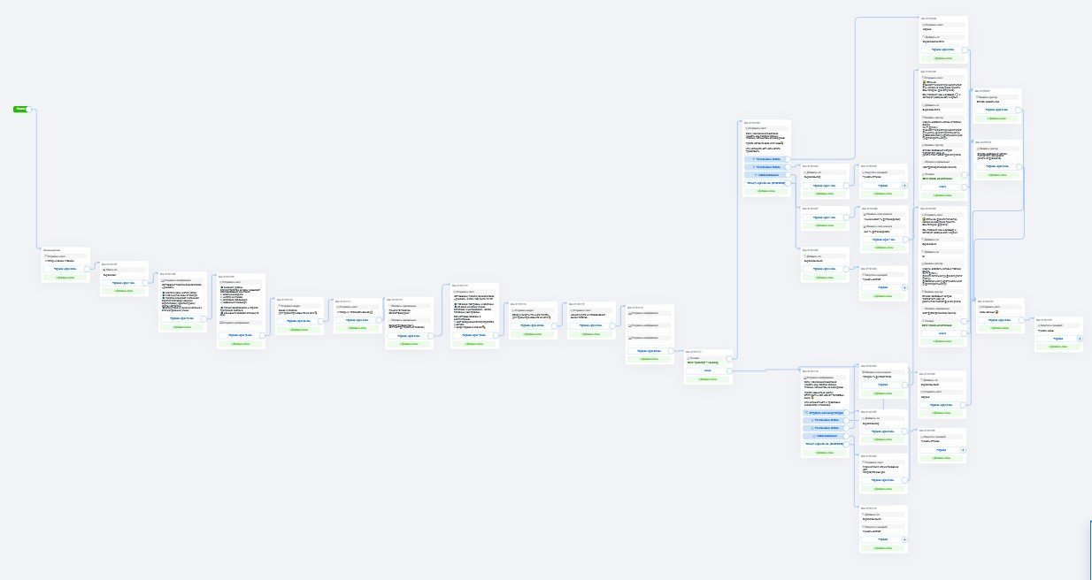 Сборка чат-бота производилась в конструкторе Chat2Desk. Все изображения и видео были обработаны в соответствии с требованиями конструктора. Кроме основных смысловых туннелей (веток, разделов) созданы технические: отписка пользователей по запросу, по "неответу", меню бота.