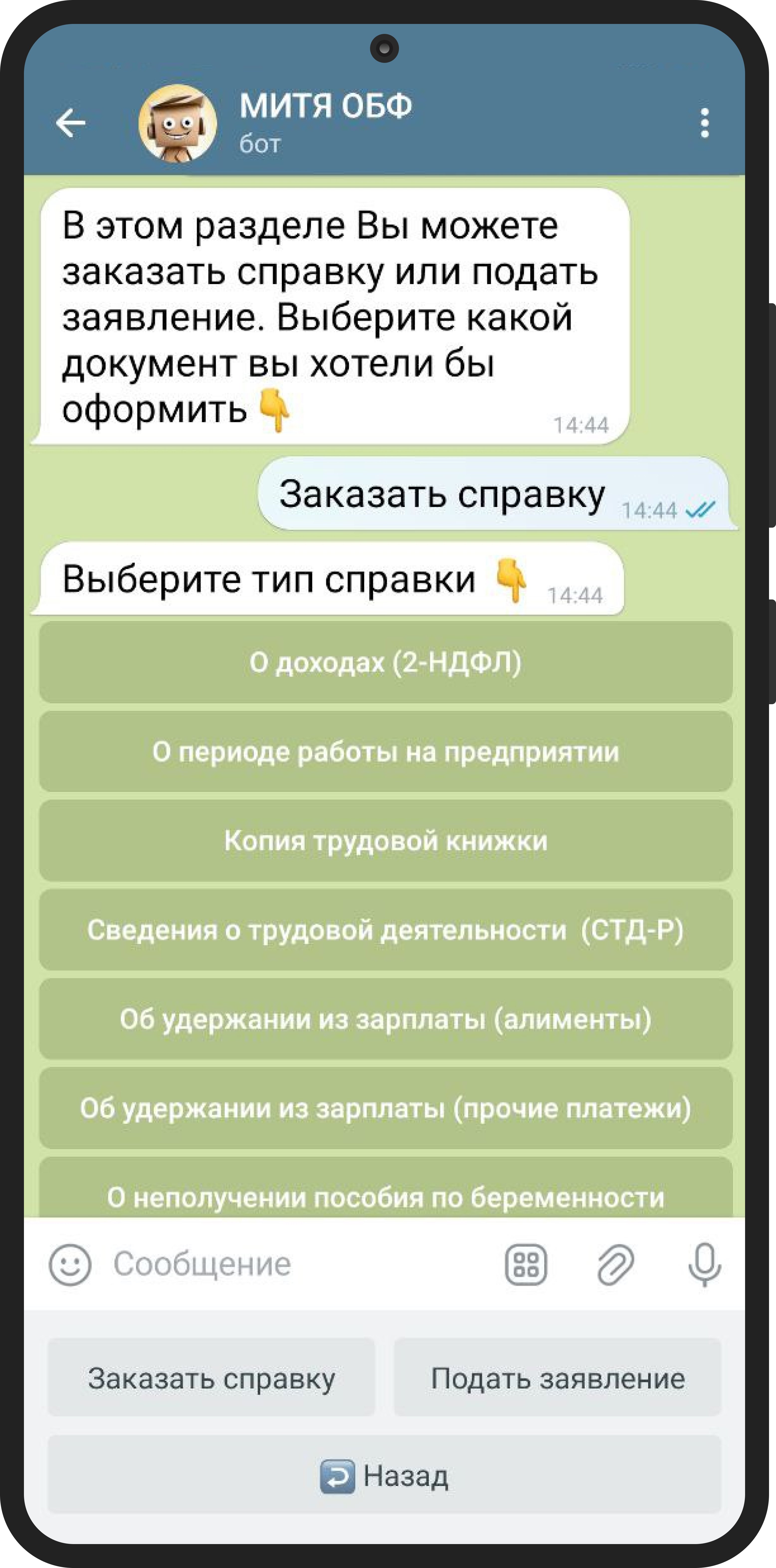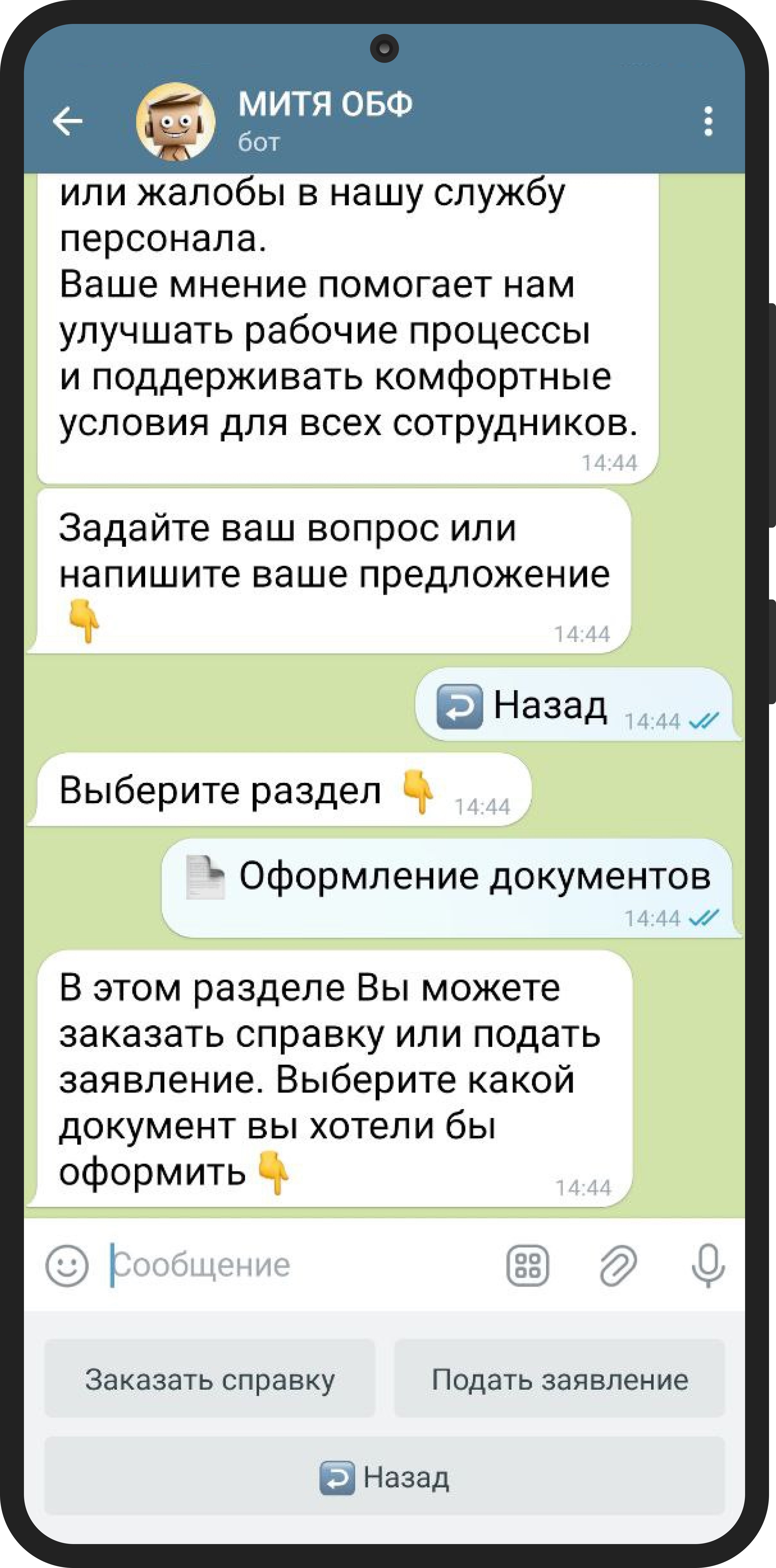 ✅ Упростить HR-процессы — заказ справок, подача заявлений, опросы, информирование, обратная связь.