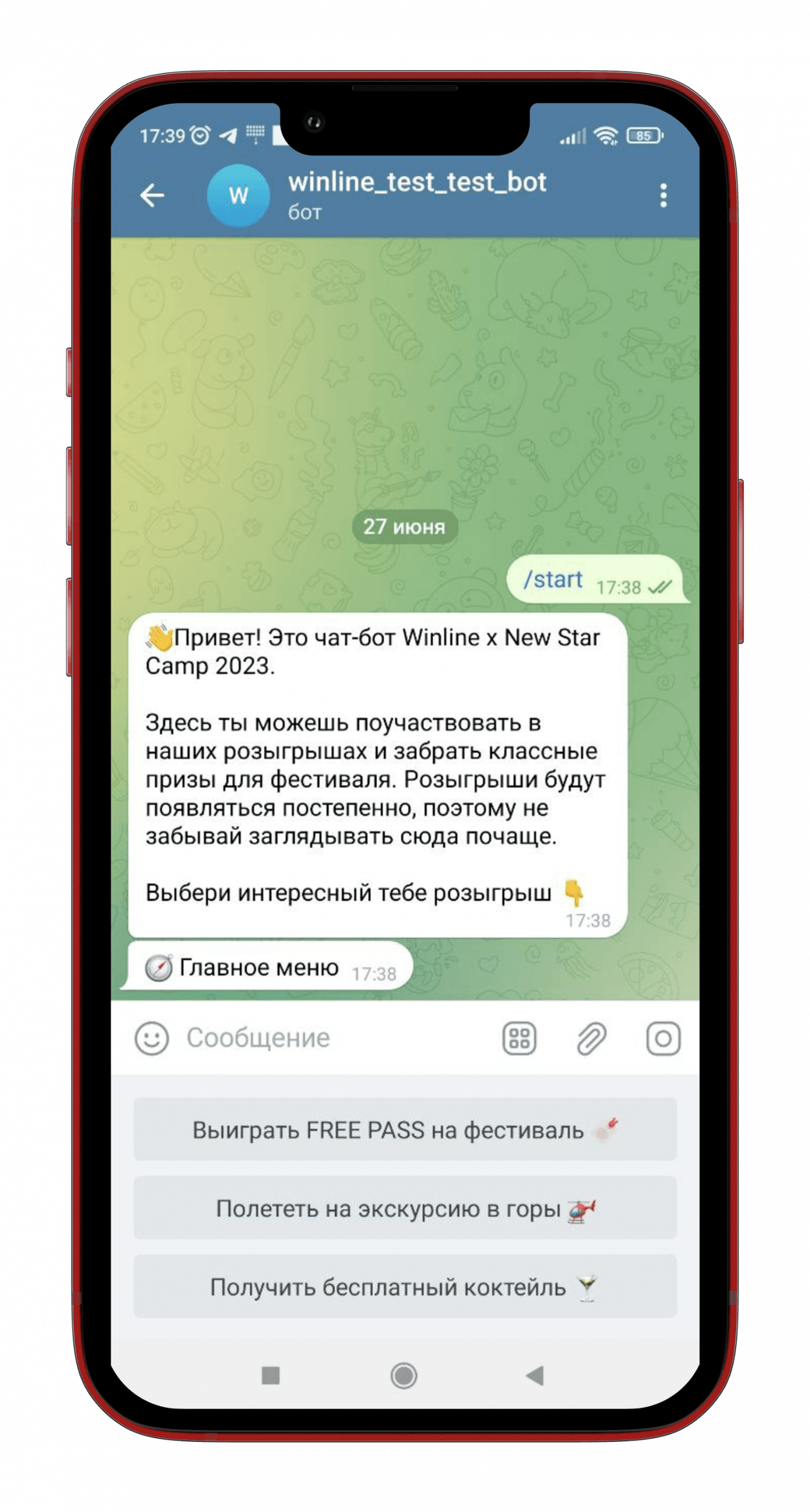 Запуск розыгрыша прошел успешно благодаря слаженной работе чат-бота с административной панелью и команде Winline. Участие в розыгрыше было доступно для всех желающих, что является ярким примером эффективной работы чат-бота. Все вопросы, возникающие в процессе, были оперативно решены благодаря активной поддержке со стороны нашей технической команды. Команда Botcreators грамотно сопровождала розыгрыш от начала до объявления результатов, обеспечивая бесперебойную функциональность чат-бота и гарантируя честность призового розыгрыша.