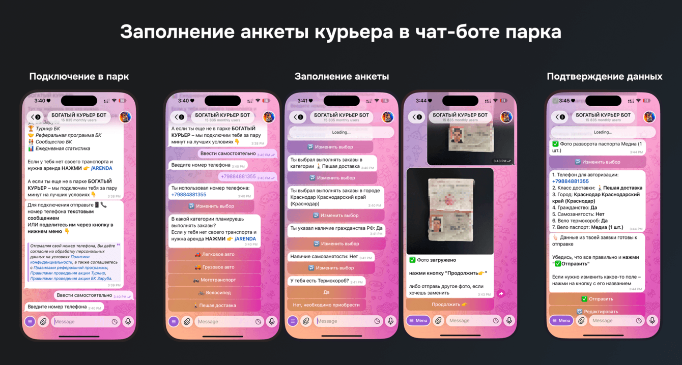 Раньше на регистрацию одного курьера уходили минуты и нервы менеджеров, теперь всё происходит автоматически. Мы реально почувствовали, как стало легче работать и быстрее подключать людей