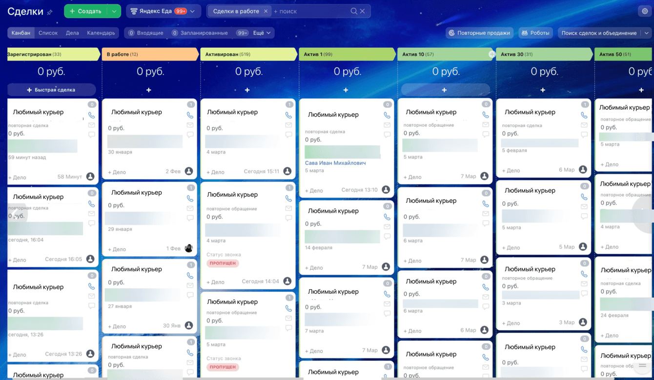 В этой нише поток новых лидов исчисляется 10 000 в месяц, а условия со стороны агрегатора, государства и налоговой регулярно меняются. В таких условиях бизнесу уже недостаточно “просто как-то работать” — нужна единая прозрачная система, которая позволяет быстро вносить массовые изменения, управлять воронкой, видеть аналитику и принимать стратегические решения на основе данных.