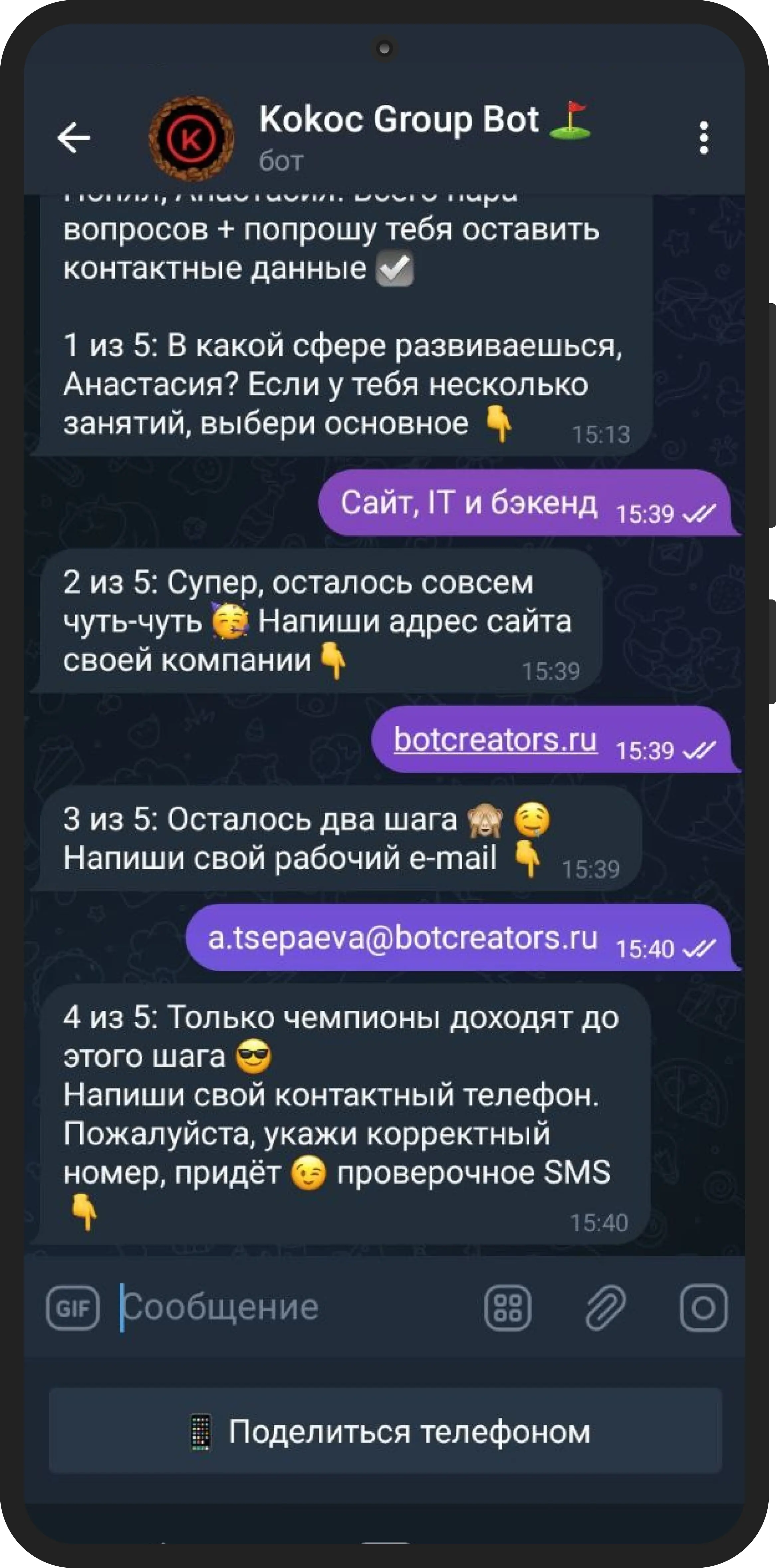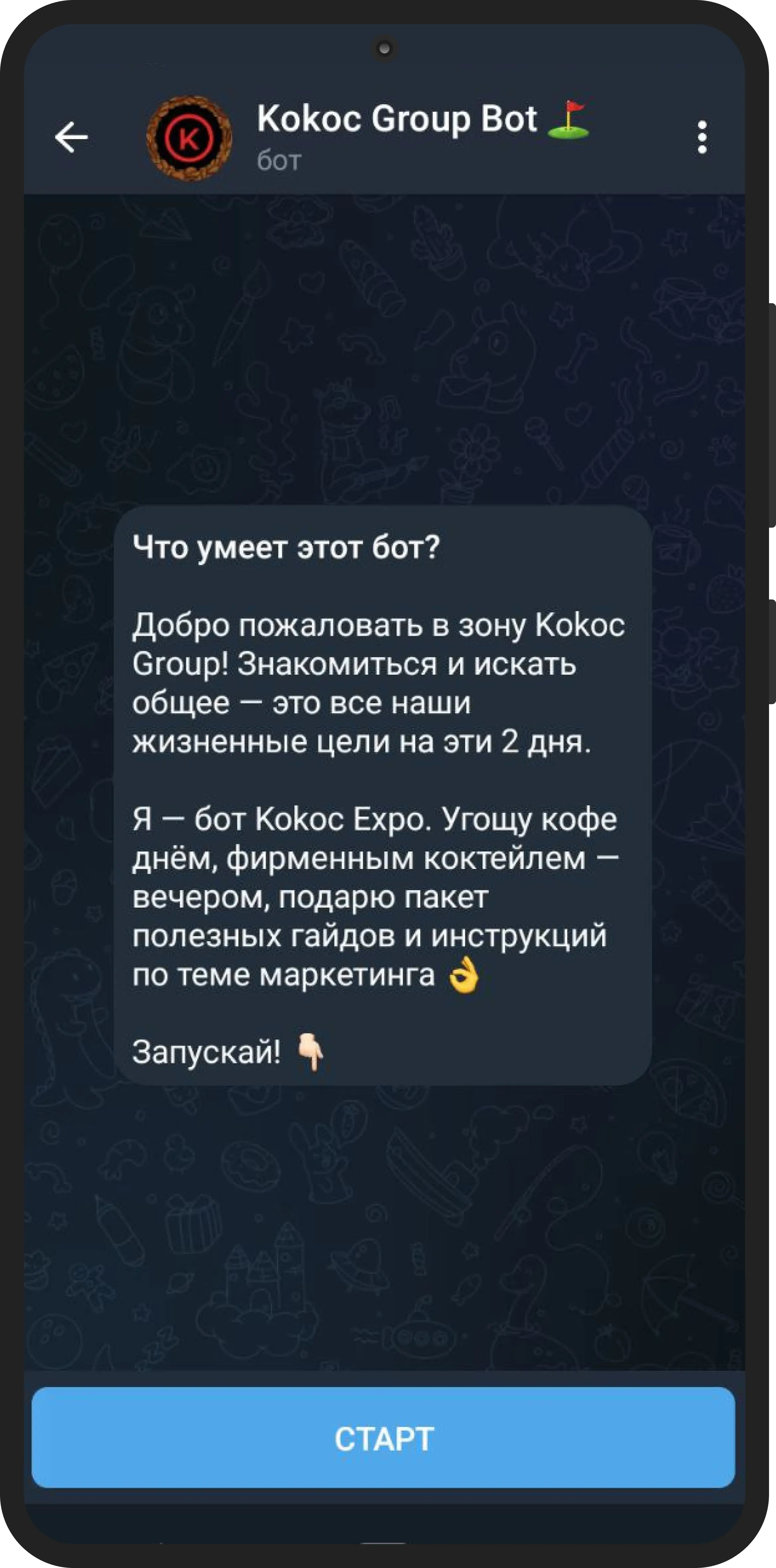 Этот проект – как раз тот случай, когда команда, клиент и идея сложились в идеальный пазл. Всего за 5 дней мы создали не просто функционального бота, а настоящего «цифрового ассистента», который угощал попкорном, развлекал игрой и помогал Kokoc Group запомниться гостям.