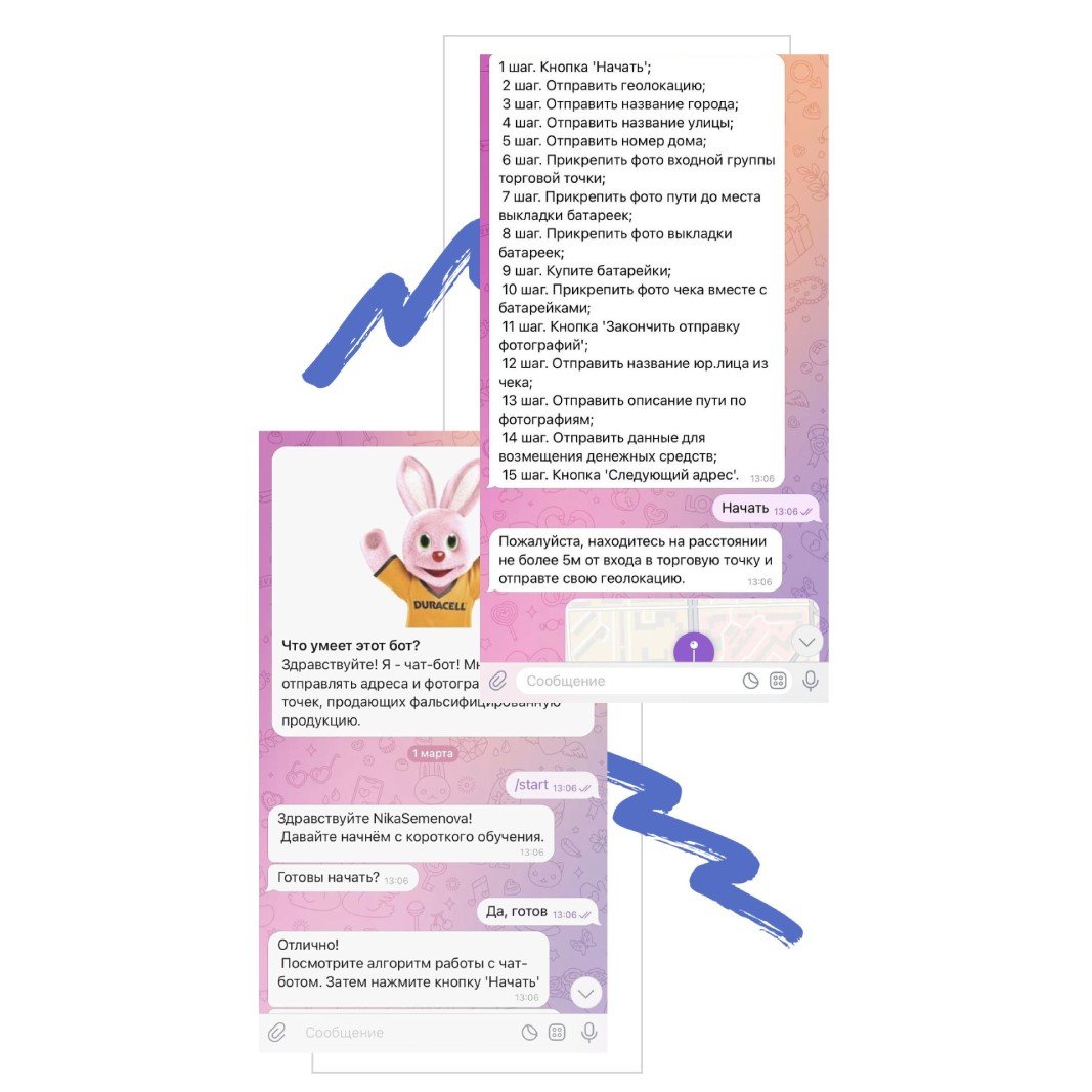Разработать чат-бот, который предназначен для привлечения команды DURACELL к обнаружению и фиксации контрафактных продуктов.