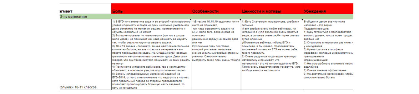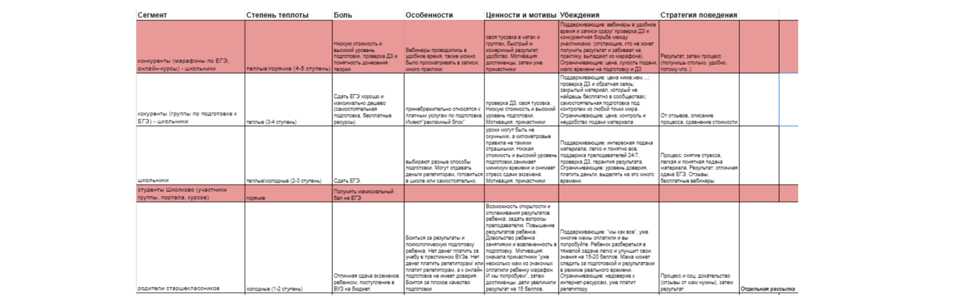 Затем был поиск и анализ болей и потребностей ЦА. Были выведены и проработаны сегменты ЦА SMM-специалистом: