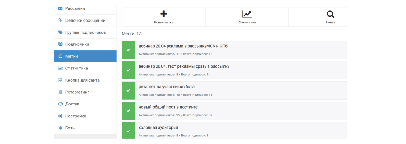 - Используйте в рекламе на подписчиков рассылки «метки» внутри Senler, которые добавляют к ссылке на группу подписчиков свою метку, по которой вы потом сможете отследить количество подписчиков с определенной рекламы: