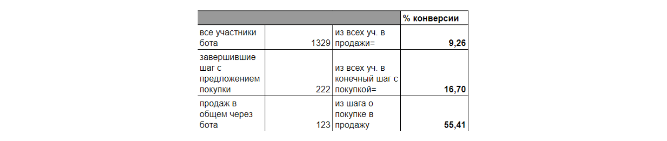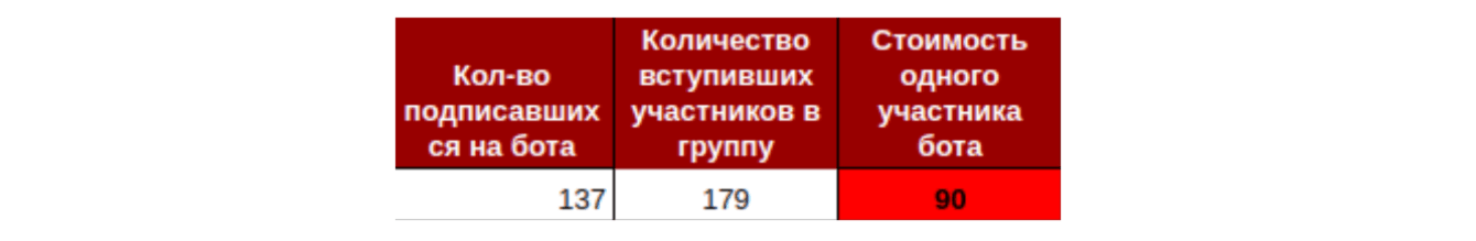 2. В рассылку через бота собрали 1329 человек по 55,7 рубля с рекламного бюджета.