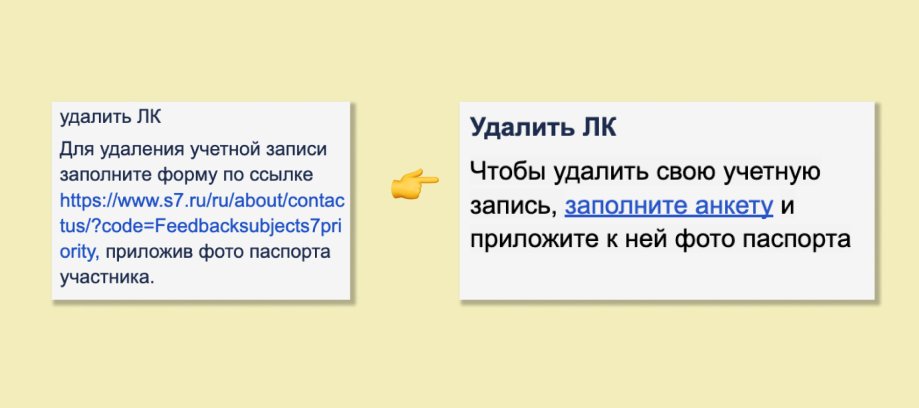 Мы не просто переписали 850 текстовых ответов, а сделали их человечными и полезными. Уверены, что путешественники S7 Airlines теперь будут получать самую точную, персональную и заботливую консультацию от Элли, а нагрузка на операторов Контактного Центра станет меньше. Если вы хотите также — пишите, мы поможем!