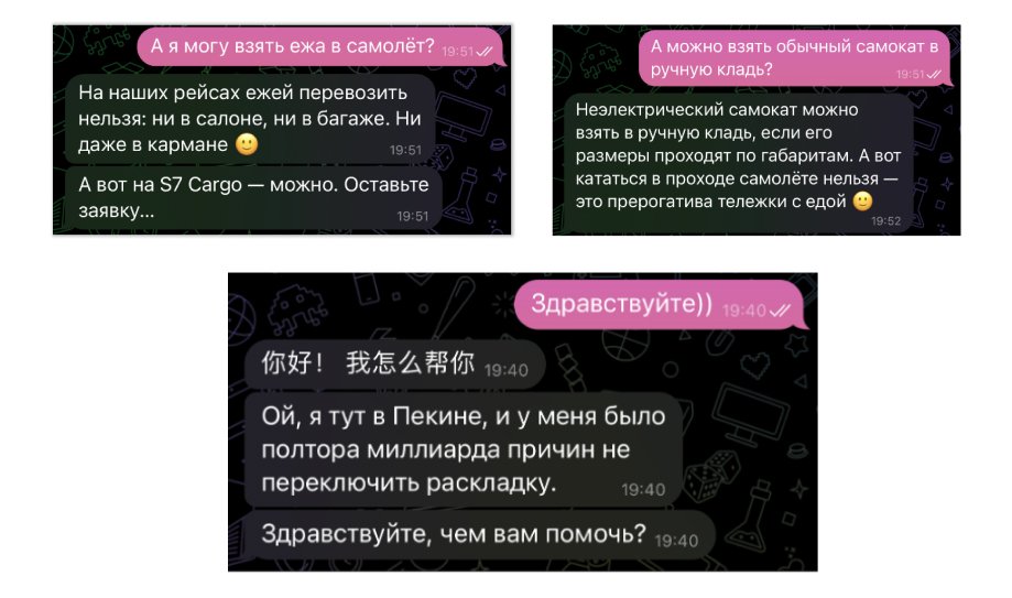 У S7 Airlines есть чат на сайте, Телеграме и мобильном приложении, где стандартными фразами путешественникам отвечал стандартный чат-бот. Такие консультации не были эффективными, поэтому путешественник часто просил связаться с оператором. Перед нами стояло несколько задач: