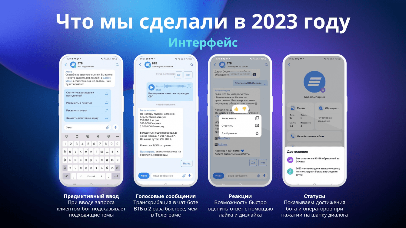 У чат-бота ВТБ лучший интерфейс на рынке. Это отметило консалтинговое агентство Markswebb в ежегодном отчете Chatbot Rank 2023.
