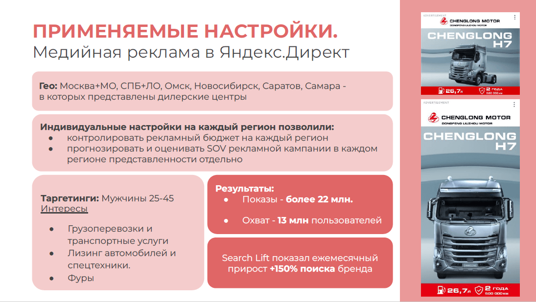 Повышение знания о продукте (Сдельный тягач CHENLONG H7) среди целевой аудитории в регионах продаж