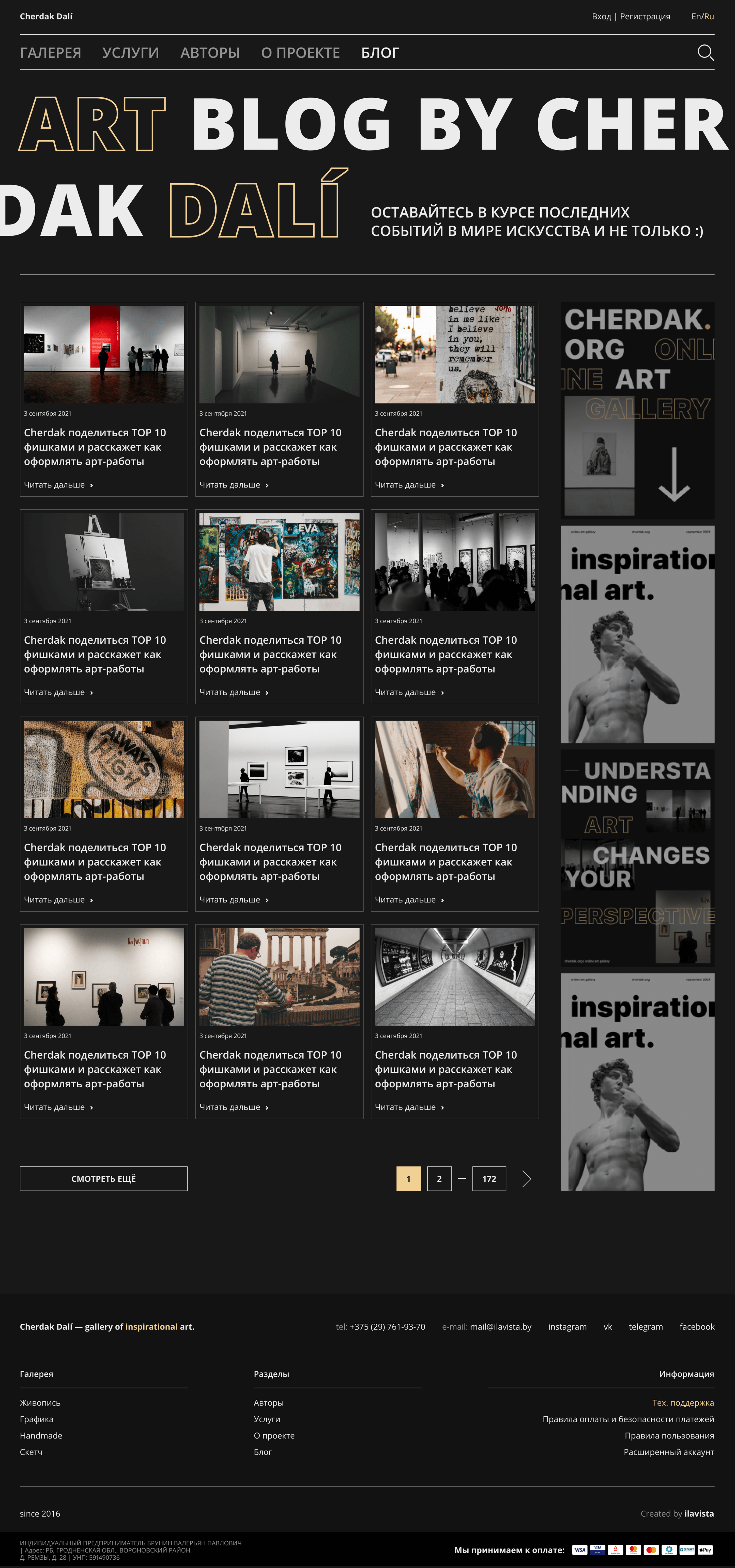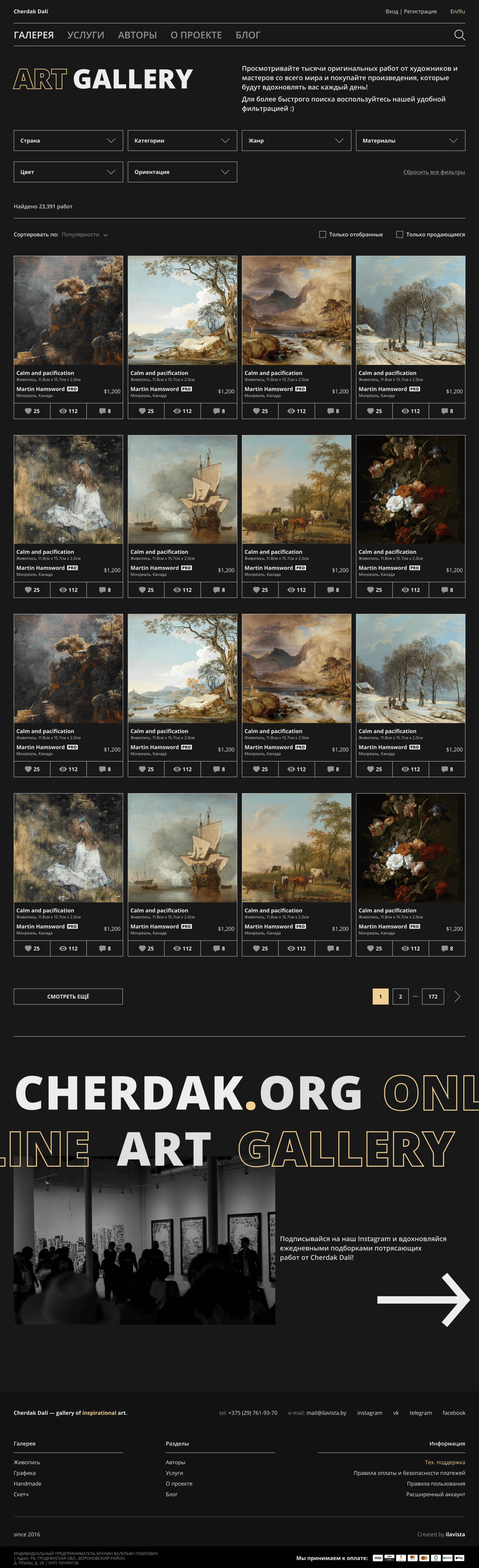 Cherdak Dalí — это не просто сайт, а интуитивная платформа, где авторы могут размещать свои работы, а покупатели — открывать для себя тысячи уникальных произведений со всего мира. Нашей задачей было создание онлайн-галереи, которая стала бы мостом между художниками и ценителями искусства и решила следующие ключевые проблемы: