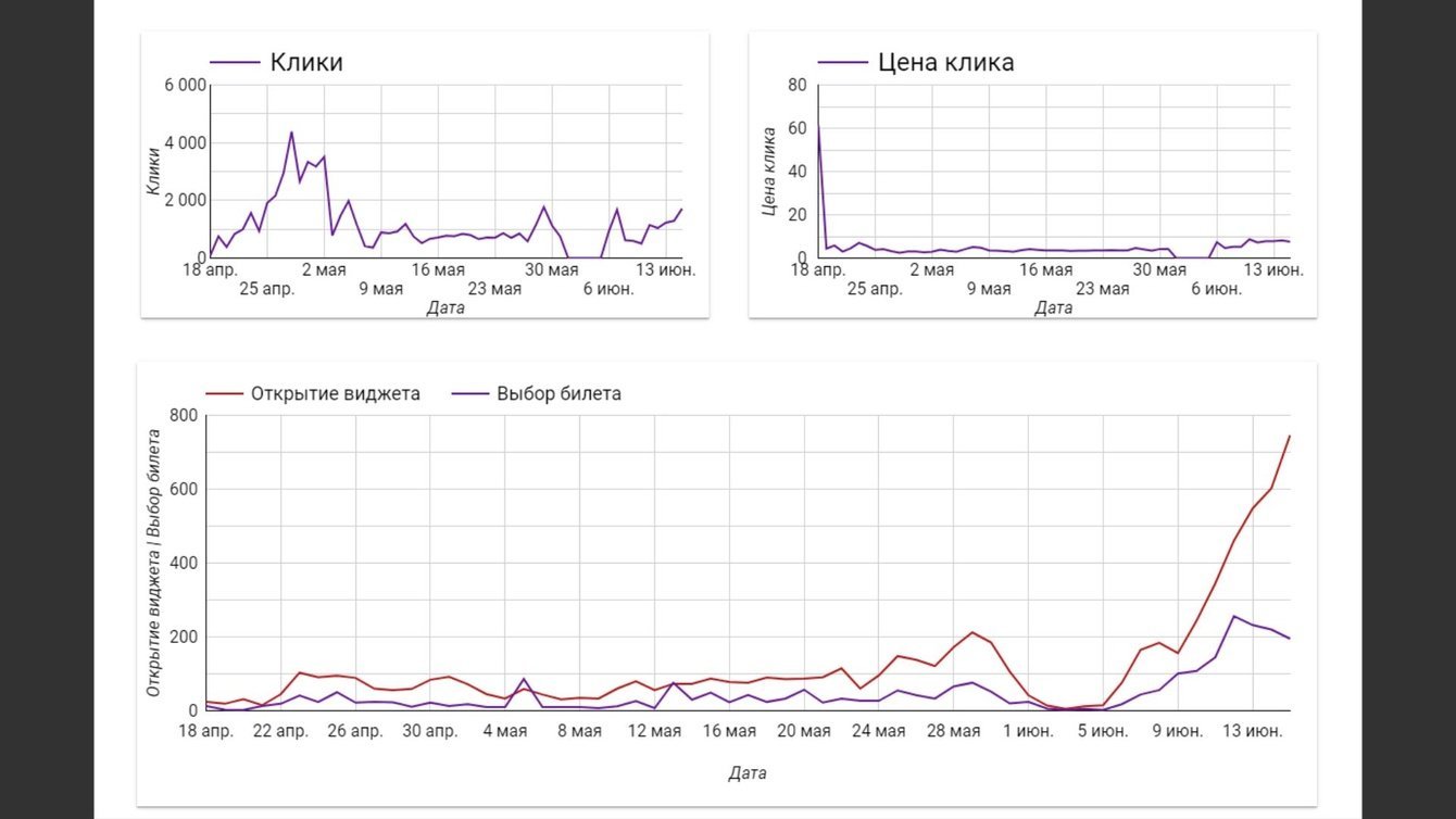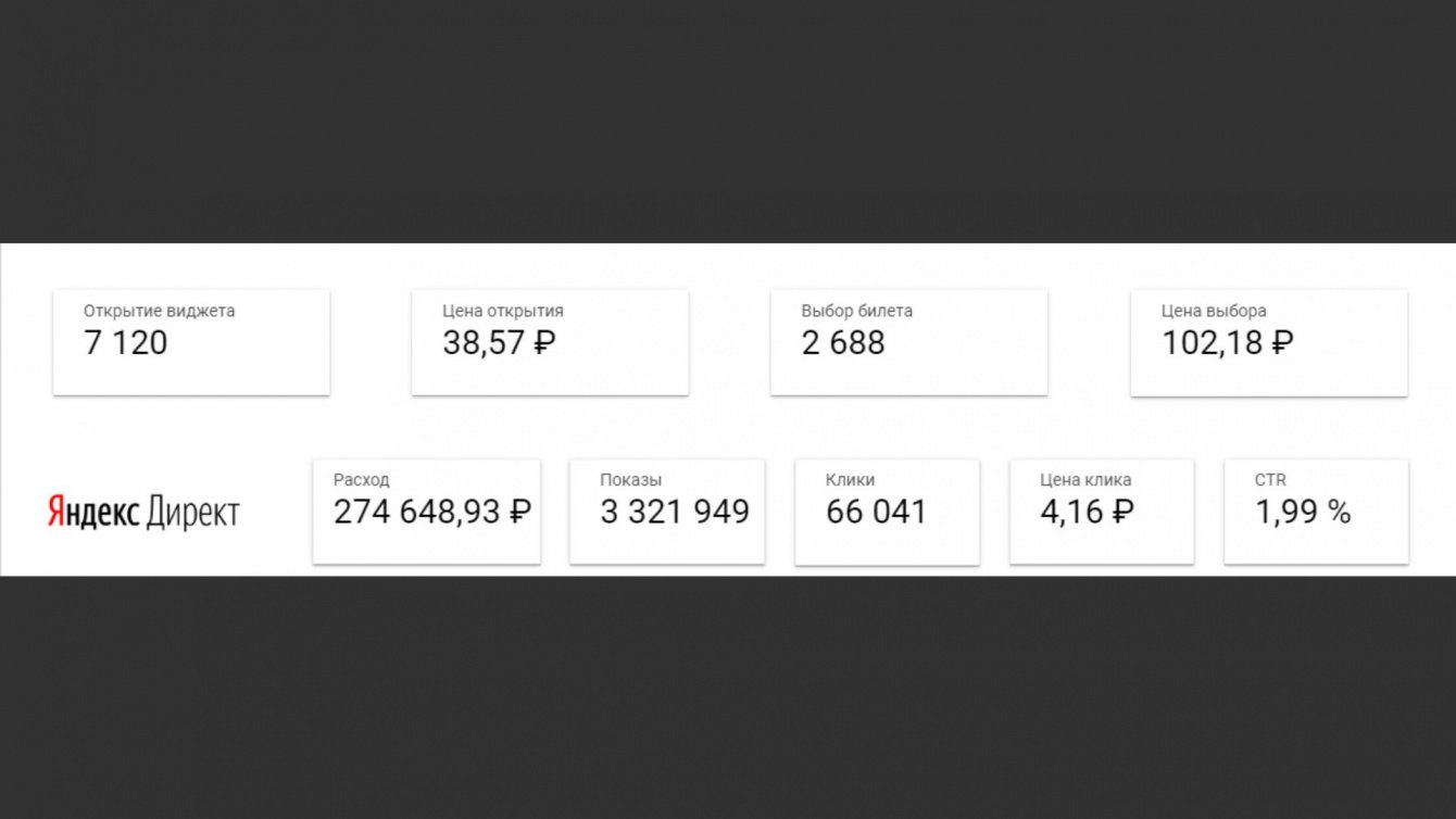 • Не смотря на высокую узнаваемость артистов, люди пришедшие по трафику с артистов смотрели сайт, но не покупали с первого раза Только перед самым мероприятием эту аудиторию удалось сконвертировать через ретаргетинг и тогда, когда у них появился прямой поисковый запрос.
