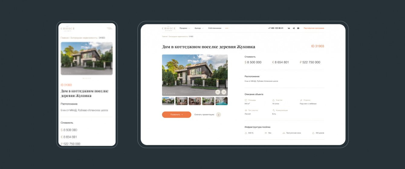 Choice Estate – агентство элитной недвижимости, – наш клиент уже более четырех лет, для которого мы ведем все digital-проекты. Одной из задач стала разработка сайта с 0.