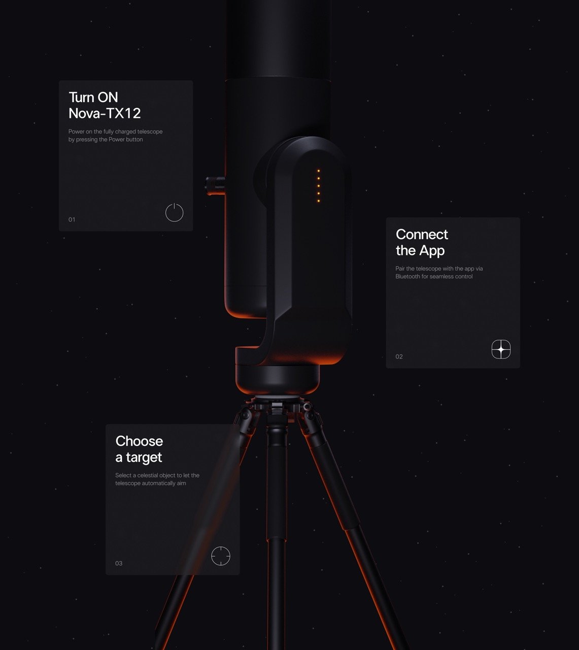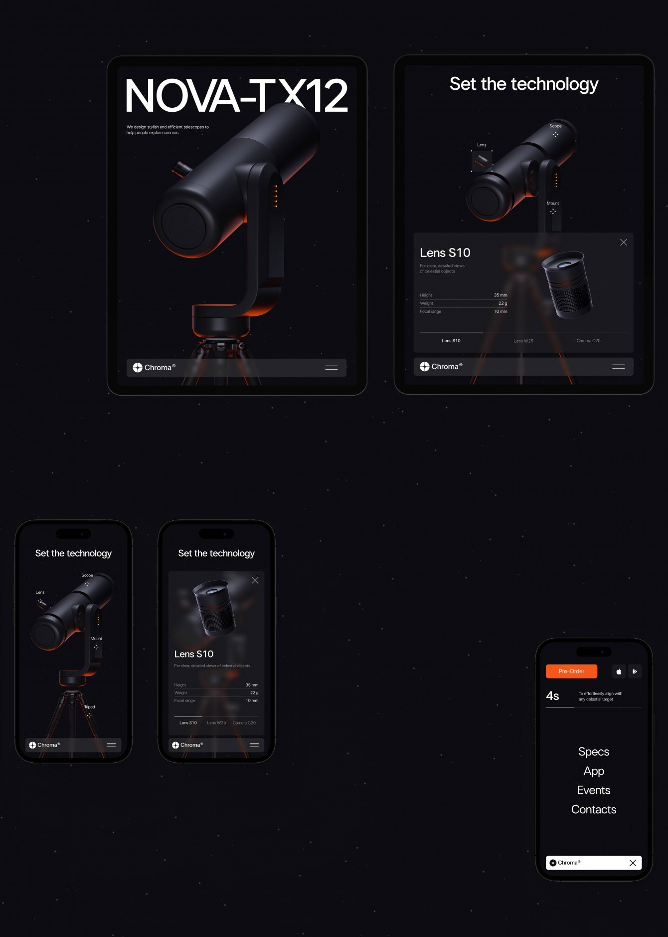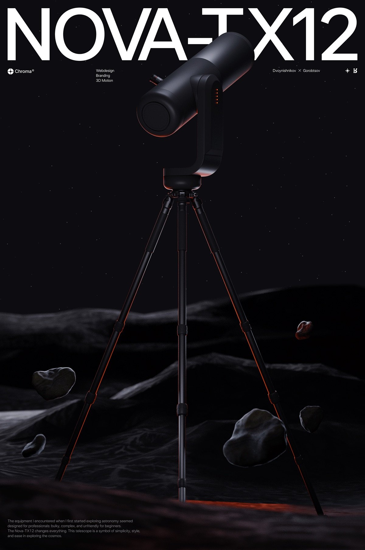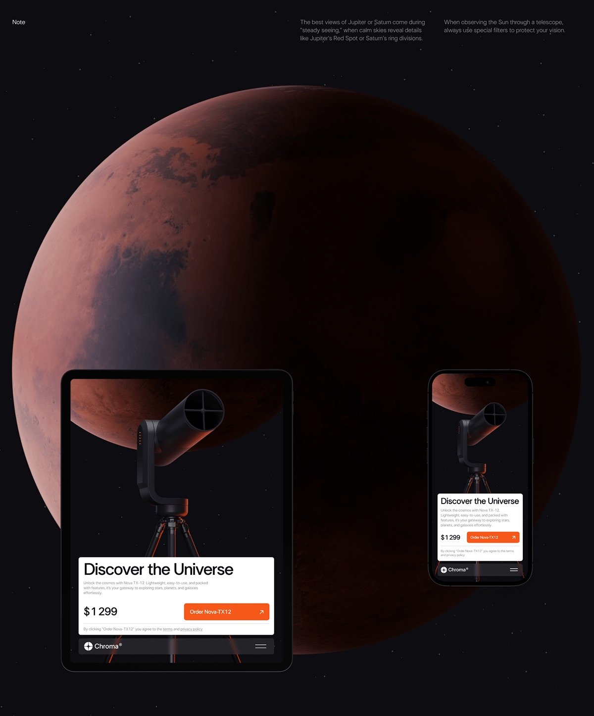 В проекте мы решили сделать астрономию более доступной, создав лендинг для телескопа, акцентируя внимание на технологичности.
