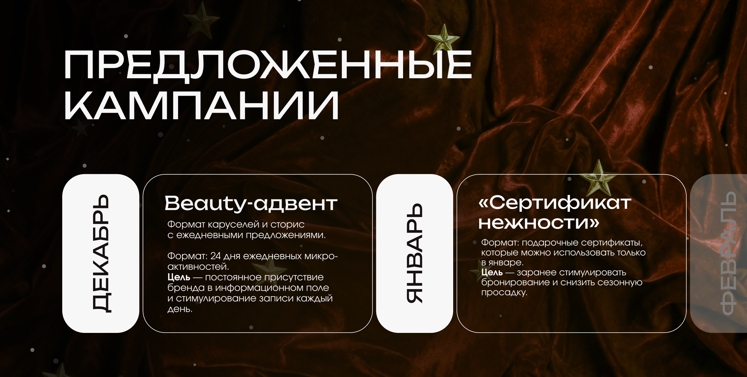 Ежедневные активности позволили поддерживать постоянный поток клиентов, а салон оказался полностью готов к январскому периоду с традиционно низкой активностью.
