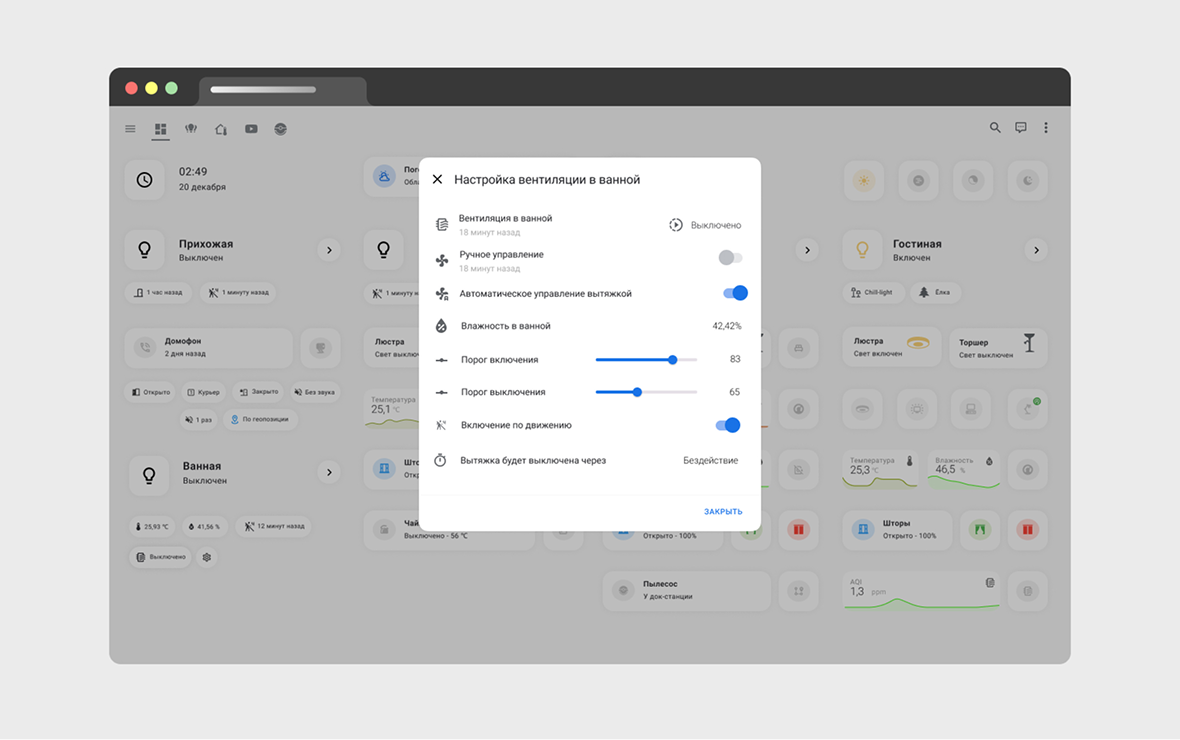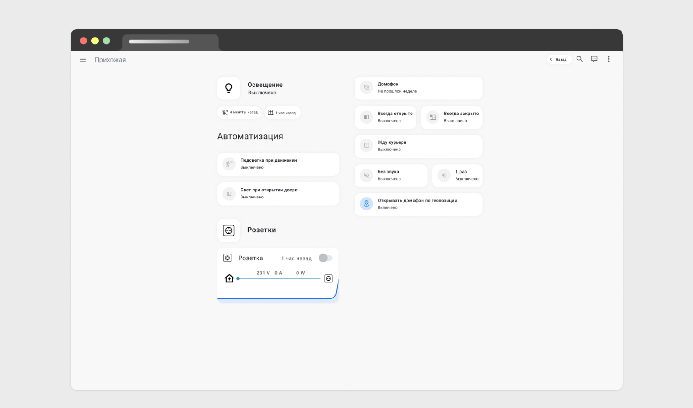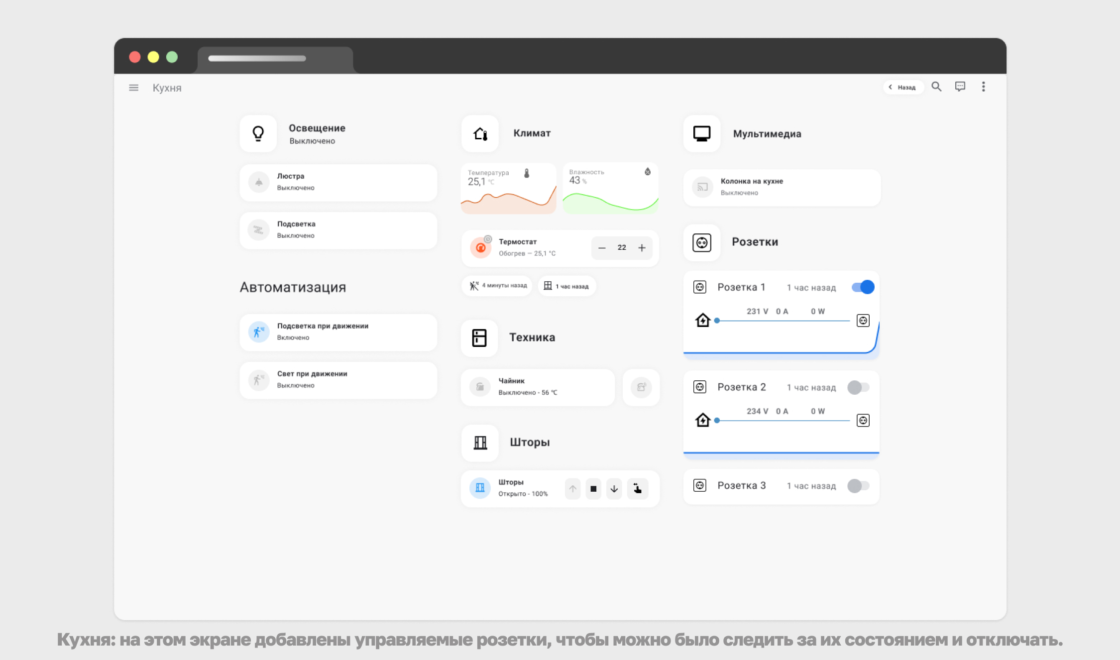Отдельно стоит сказать про независимость от интернета. Когда пропадает связь, обычный умный дом превращается в обычный. Наша система продолжает работать в штатном режиме: сценарии выполняются, устройства реагируют, данные хранятся локально.