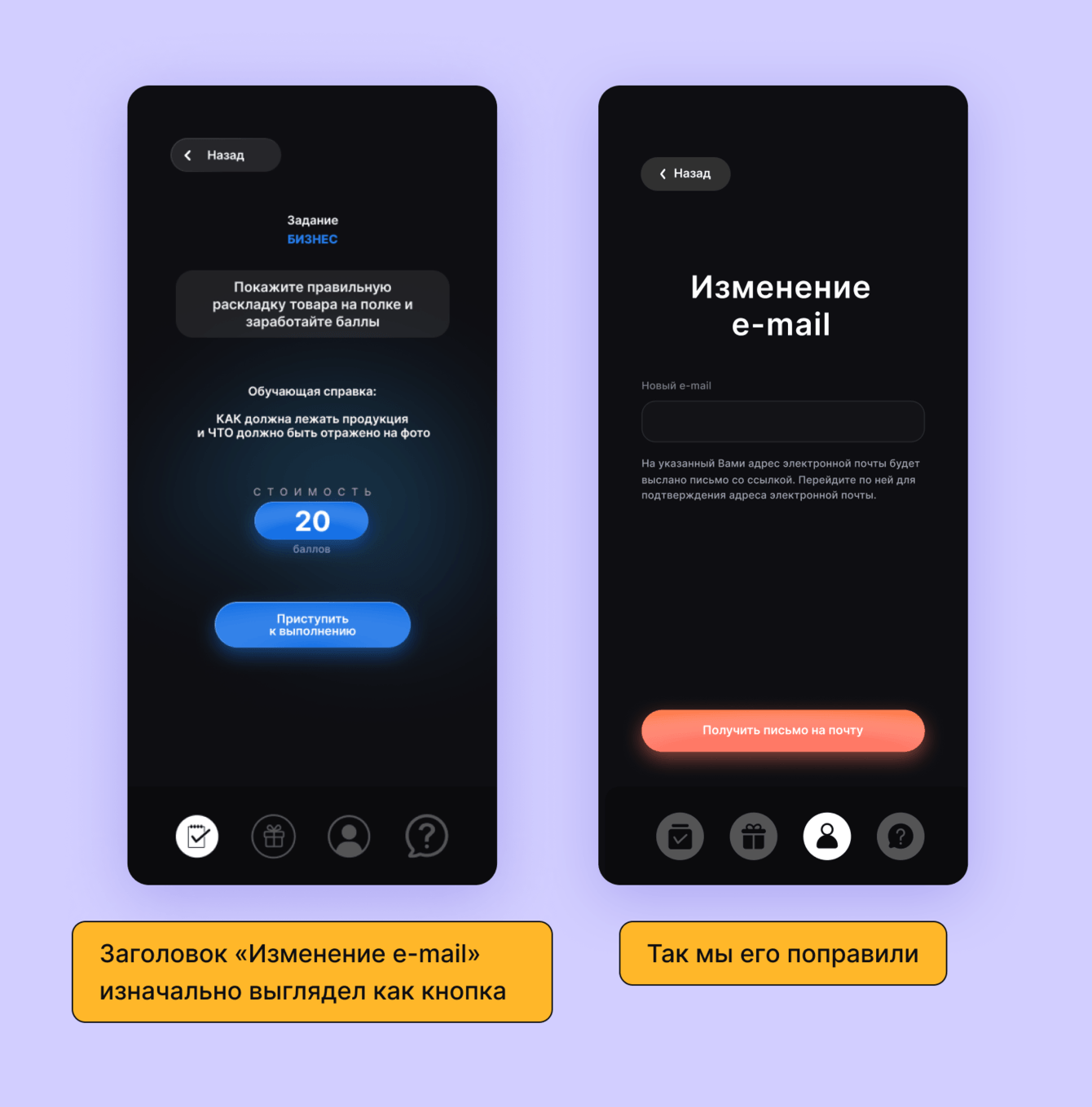 ◾️ Заголовки на некоторых экранах были похожи на кнопки.
