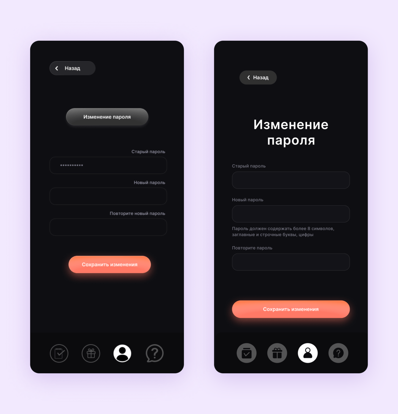Сравните: слева экран, который создавался без учета UI-kit, справа — доработанный экран с однородным дизайном.