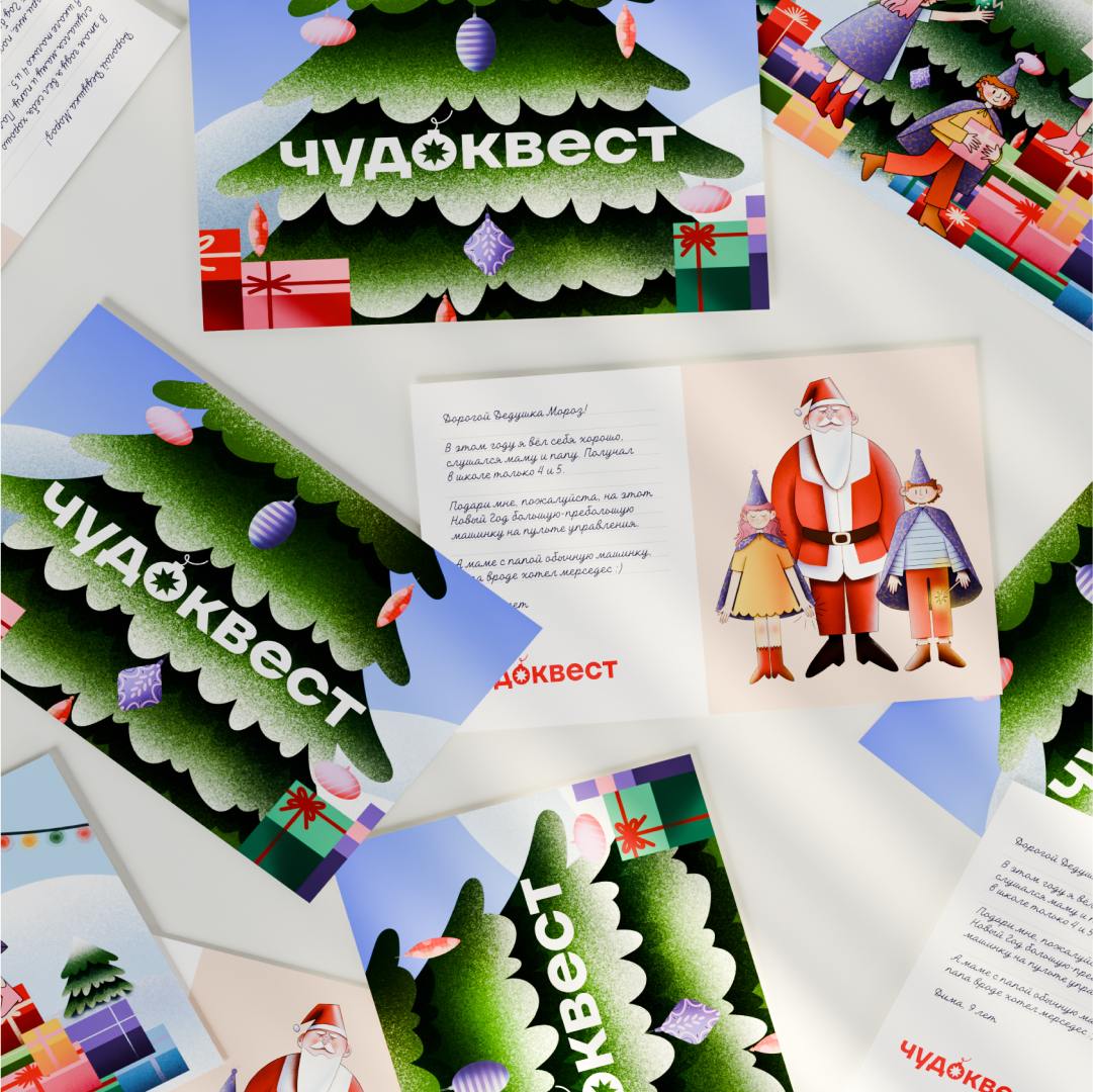Чтобы сделать бренд эмоциональным и живым, во главе визуальной айдентики заложены красочные иллюстрации, каноническая новогодняя палитра, поддерживающая линейная графика.