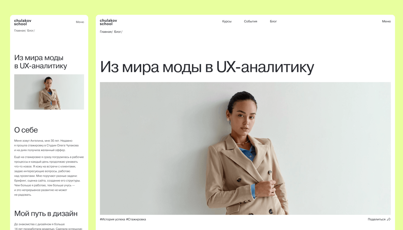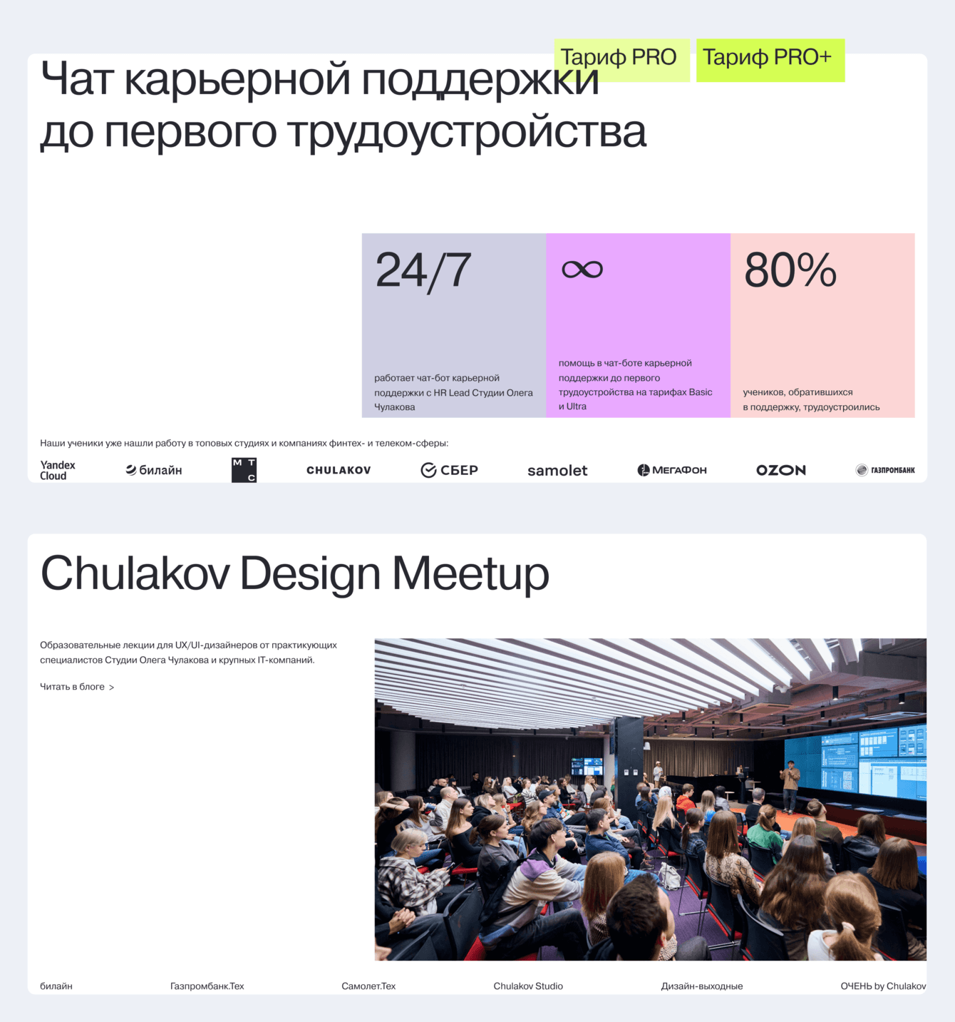 В блоге собрали полезные материалы на актуальные темы в сфере дизайна, а также новости о ключевых событиях дизайн-комьюнити Chulakov. Этот подход позволил даже на сайте сформировать динамичное сообщество, где каждый пользователь чувствует себя частью большого и значимого процесса.