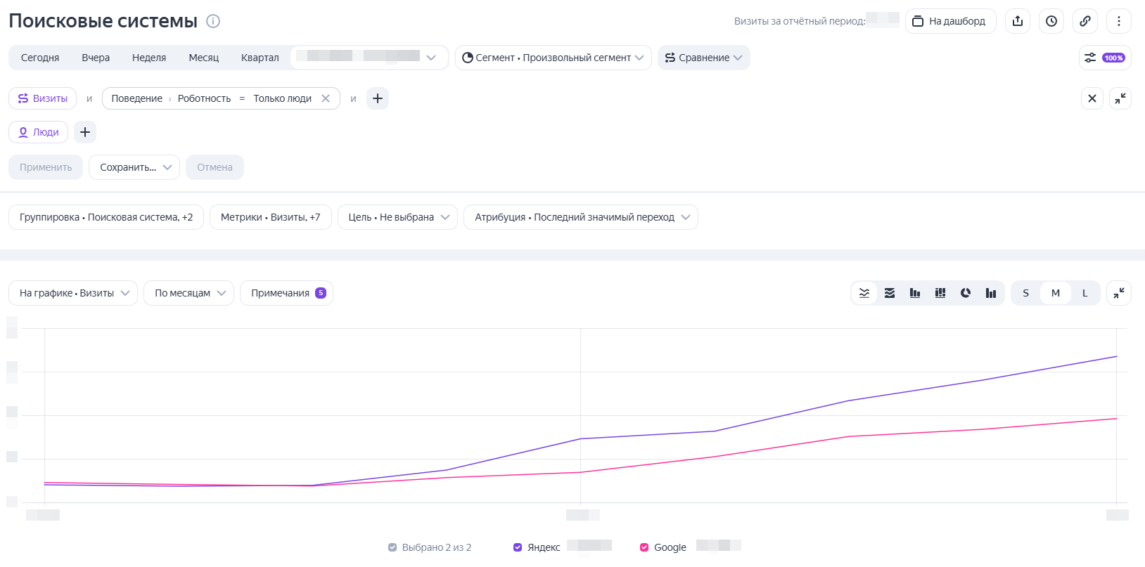 - Активность в AI-выдаче: с учетом роста упоминаний в AI-ответах (Алиса, AI Overview и другие ассистенты), увеличилась доля прямых и повторных заходов на сайт на 30-50%, что говорит о повышении интереса и доверия со стороны пользователей.