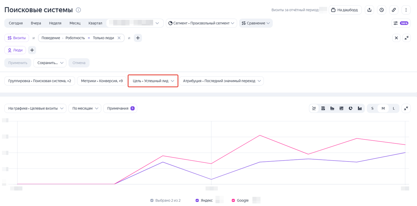 - Работа с конверсиями: на основе анализа поведения пользователей были оптимизированы посадочные страницы для повышения конверсий, улучшены элементы UI/UX, чтобы увеличить количество успешных лидов из органики.