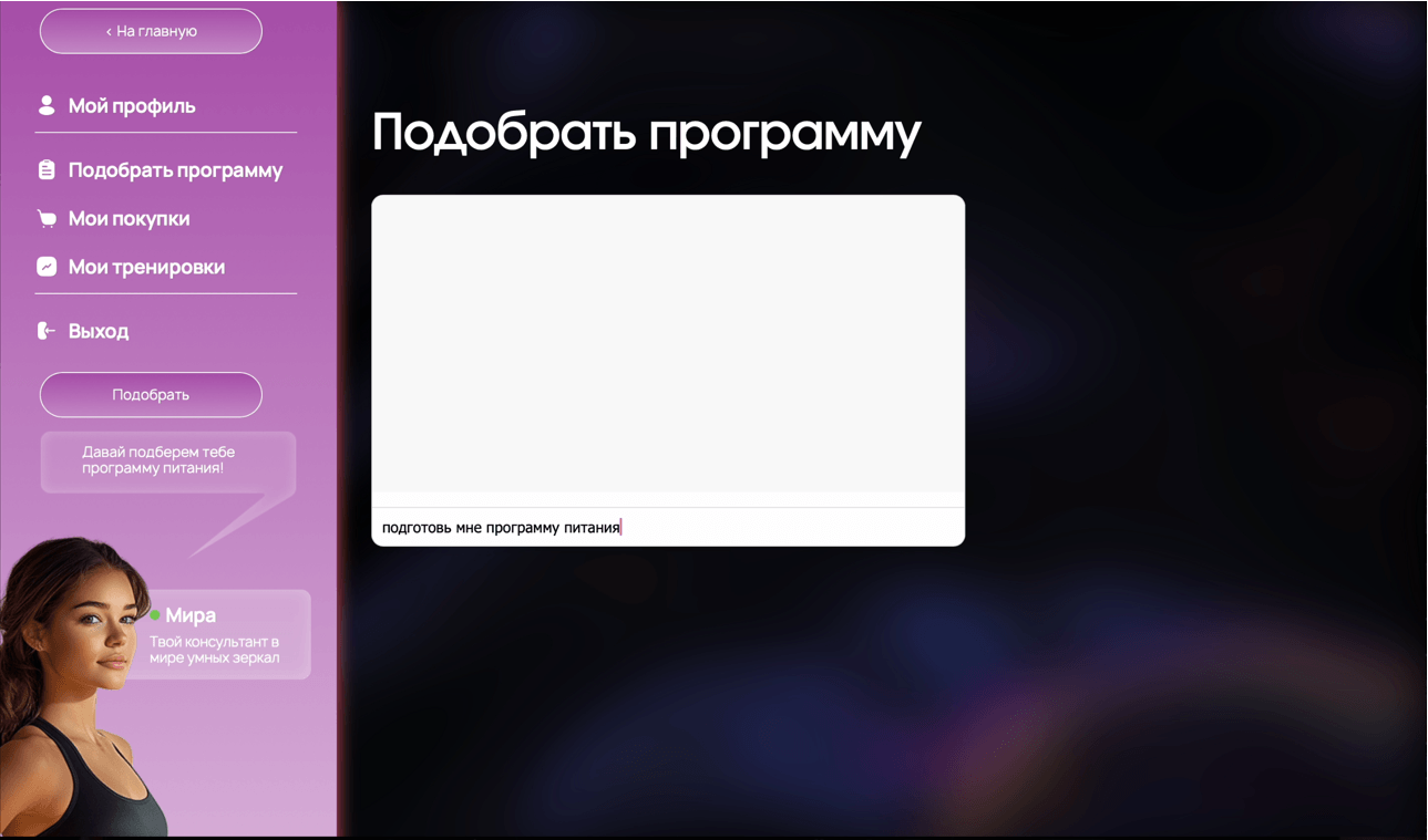 • разработали AI-аватара "Мира" и внедрили AI-нутрициолога в интерфейс платформы;