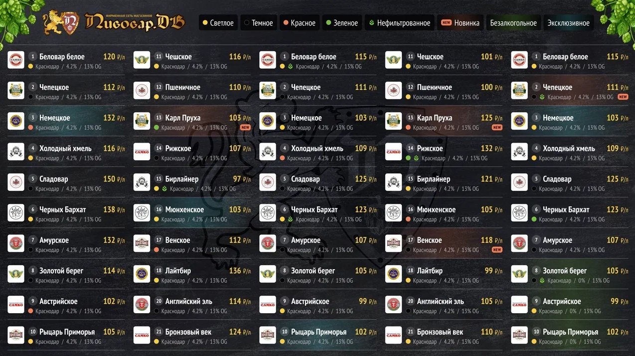 Разработка интерактивного цифрового табло для сети магазинов разливного пива "ПИВОВАР ДВ"
