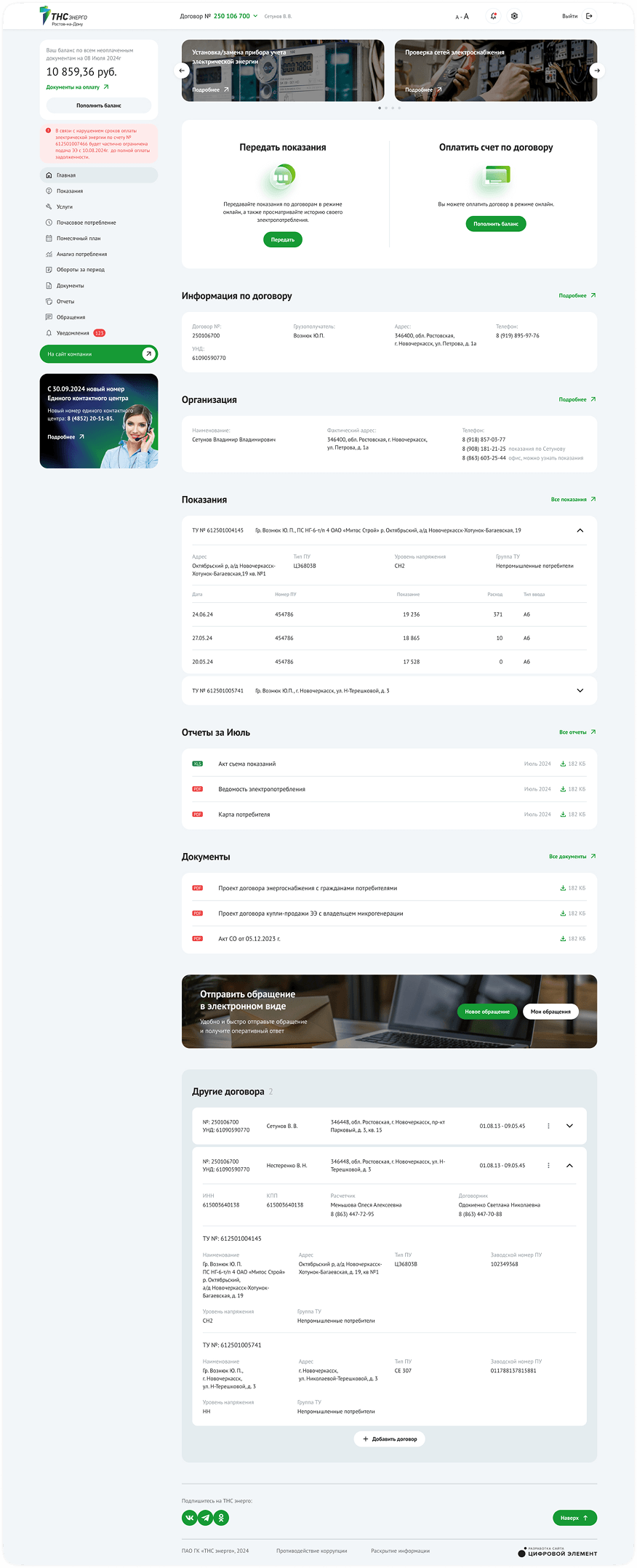 * онлайн-взаимодействие с поставщиком электроэнергии.
