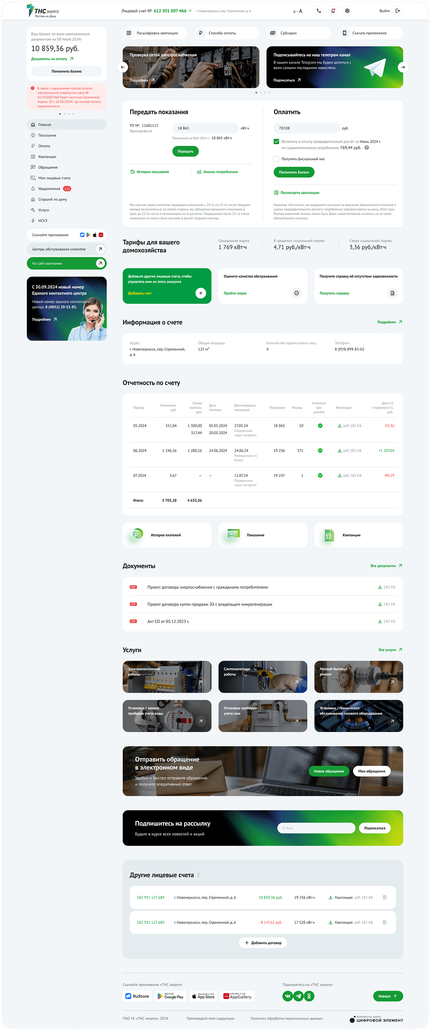 Для каждого дочернего общества реализован полноценный онлайн-сервис для клиентов: