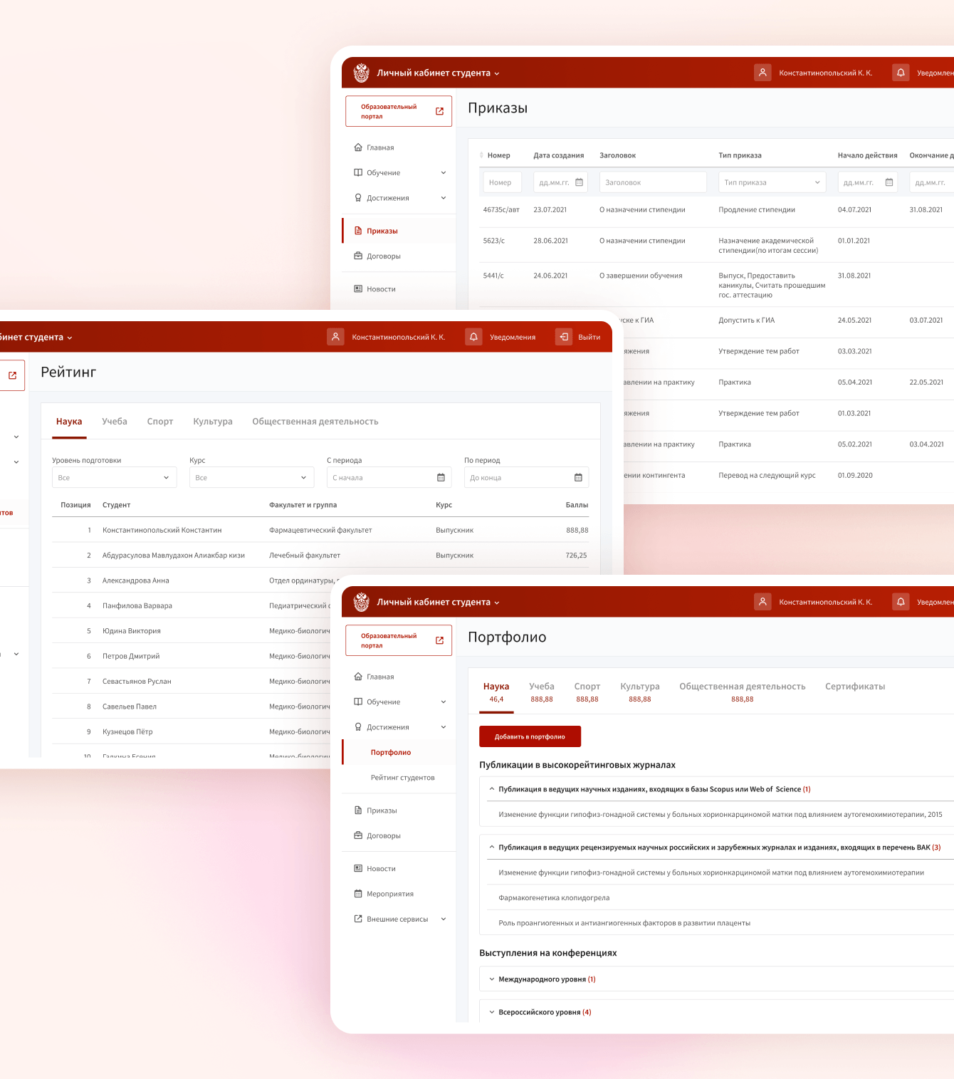 - Разработать раздел личного кабинета «Портфолио студента» во внутренних системах университета.