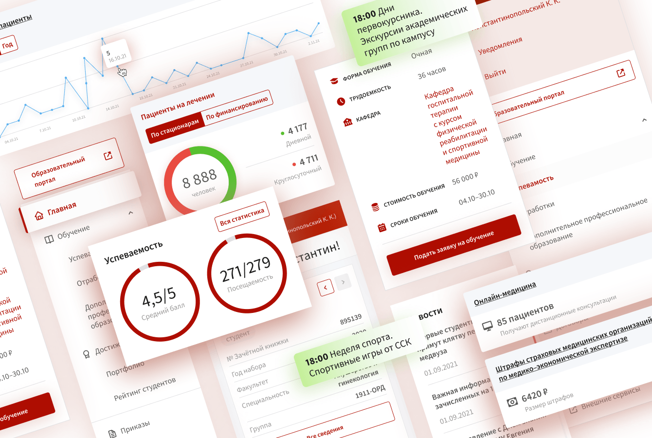 В результате цифровизации у СибГМУ появились веб-сервисы, личные кабинеты, сайты онлайн-консультаций, мобильное приложение и электронный документооборот. Многие роли пользователей сервисов пересекаются: студент может быть ученым, врач — преподавателем, родитель — пациентом и т.д. Пользователи могут быстро сориентироваться и найти нужную информацию.