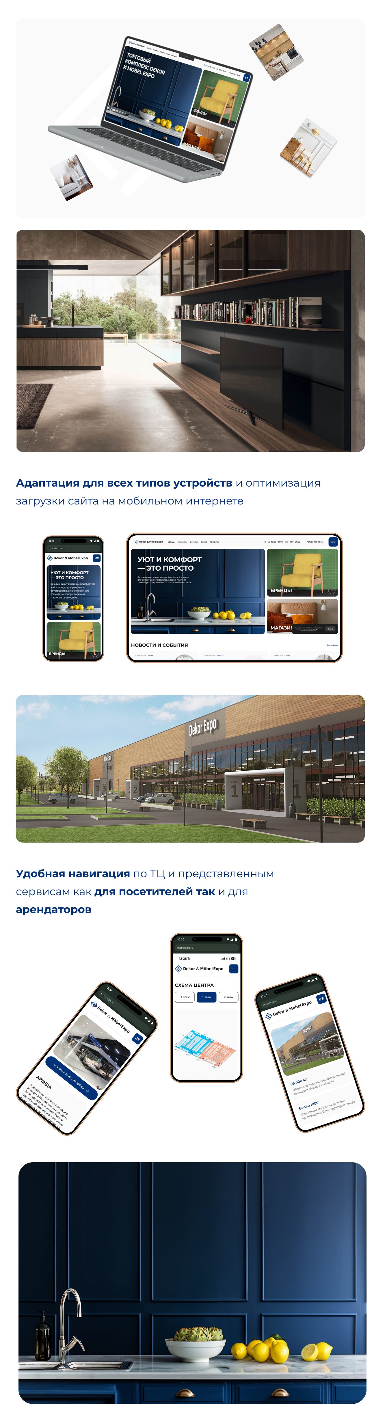Создать удобный и визуально привлекательный сайт для торгового центра, рассчитанный на DIY-аудиторию — покупателей материалов и товаров для ремонта. Заказчик ставил задачу передать через сайт ощущение уюта и домашнего комфорта, дать полную информацию о преимуществах центра и услугах, а также построить CGM пользователя, который бы эффективно информировал посетителя о всех возможностях и сервисах ТЦ. Важной бизнес-целью было улучшить коммуникацию с потенциальными посетителями и арендаторами через цифровую платформу.