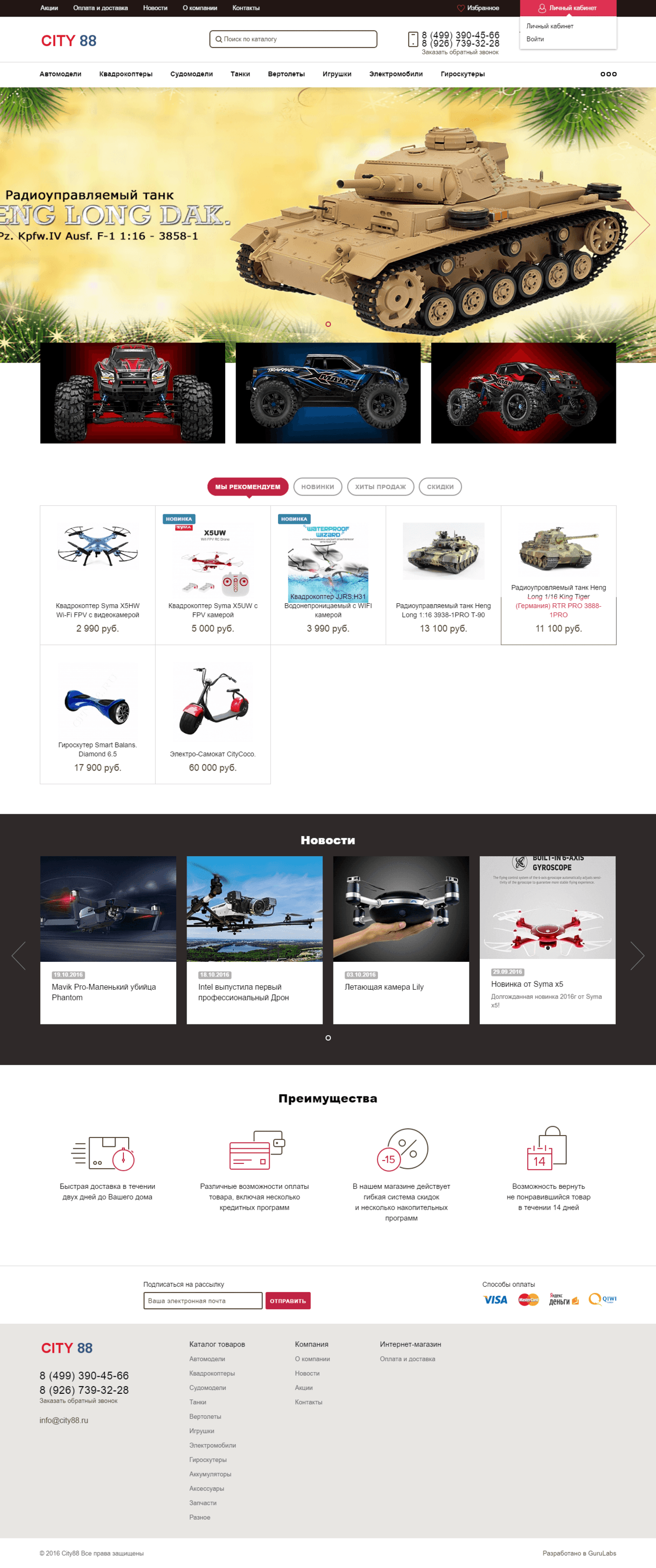 City88.ru - Современный интернет-магазин товаров для молодёжных развлечений, простой, красочный и удобный - очередной проект веб-студии GuruLabs!