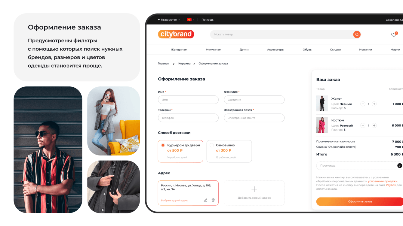 Функционал сайта позволяет не просто добавить вещь в корзину, но и выбрать подходящий способ доставки, адрес.