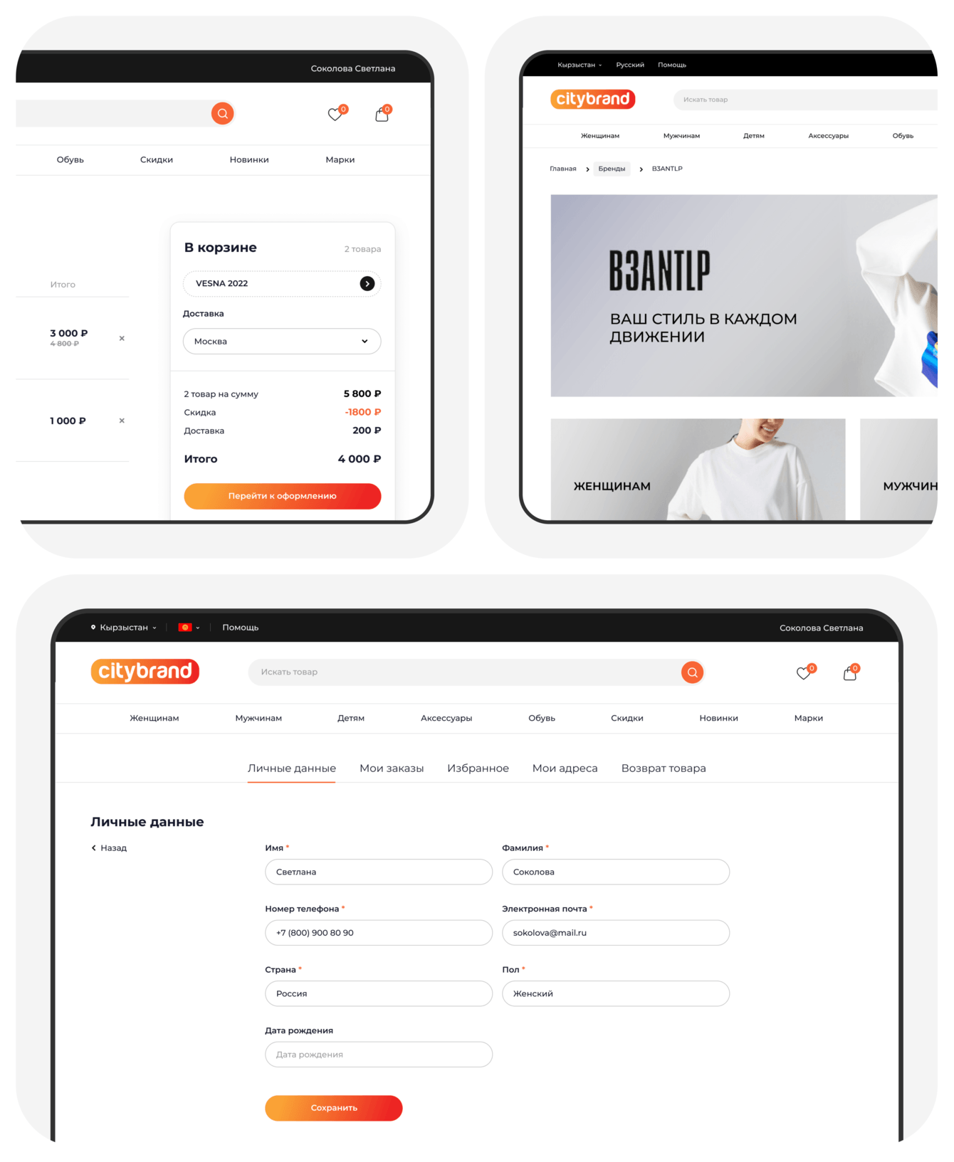 Реализован функционал регистрации, которая делает доступными такие разделы, как «Личные данные», «Мои заказы», «Избранное», «Мои адреса», «Возврат товара».