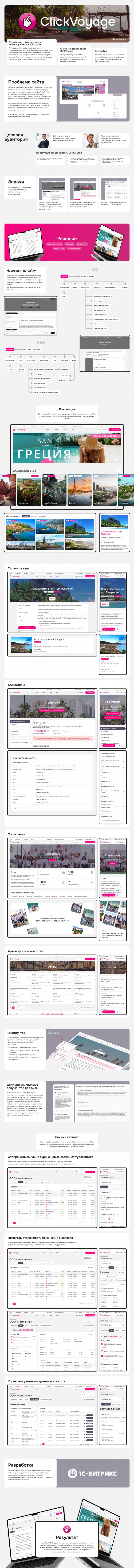 Основная проблема старого сайта ClickVoyage — отсутствие той презентабельности, которая необходима ведущему туроператору премиального сегмента. Дизайн сайта был устаревшим, а целостность внешнего вида сайта отсутствовала в целом. На вспомогательных страницах был размещен только текст без визуального сопровождения.