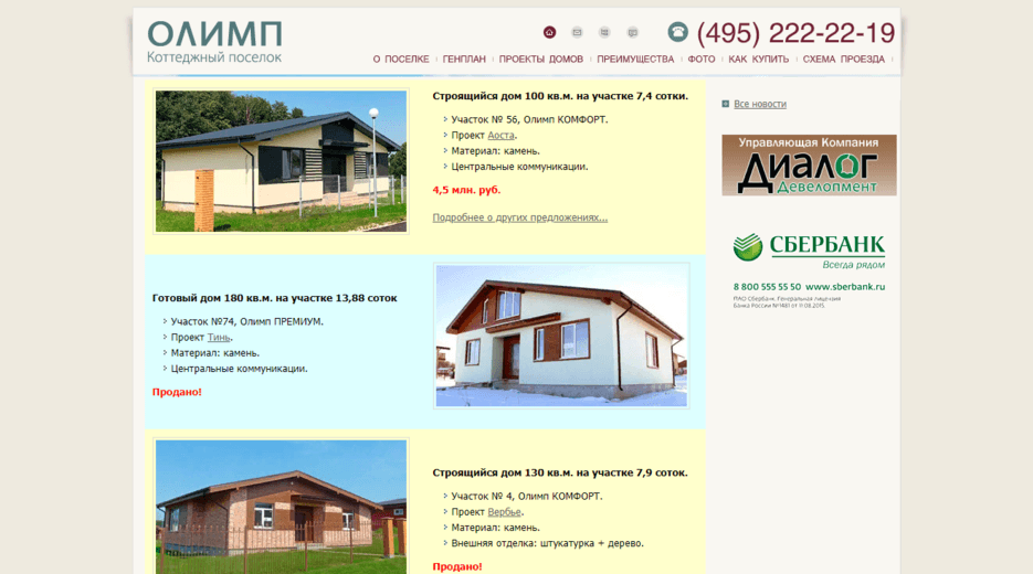 Олимп – жилой коттеджный поселок на Каширском шоссе, в 50 км от Москвы. Поселок построен в едином архитектурном стиле. Все центральные коммуникации работают и сданы в эксплуатацию, построено более 120 домов, работает охрана.