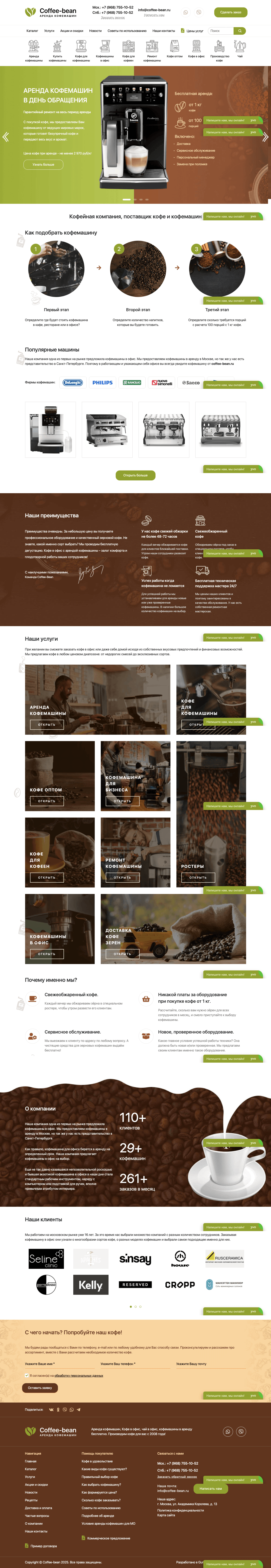 Клиент: Разработка сайта, понятно и доступно отражающего спектр услуг компании Coffee-bean. Сайт должен быть удобным и привлекательным.Ярким, симпатичным, отображающим услуги компании в выдержанном, минималистичном дизайне.