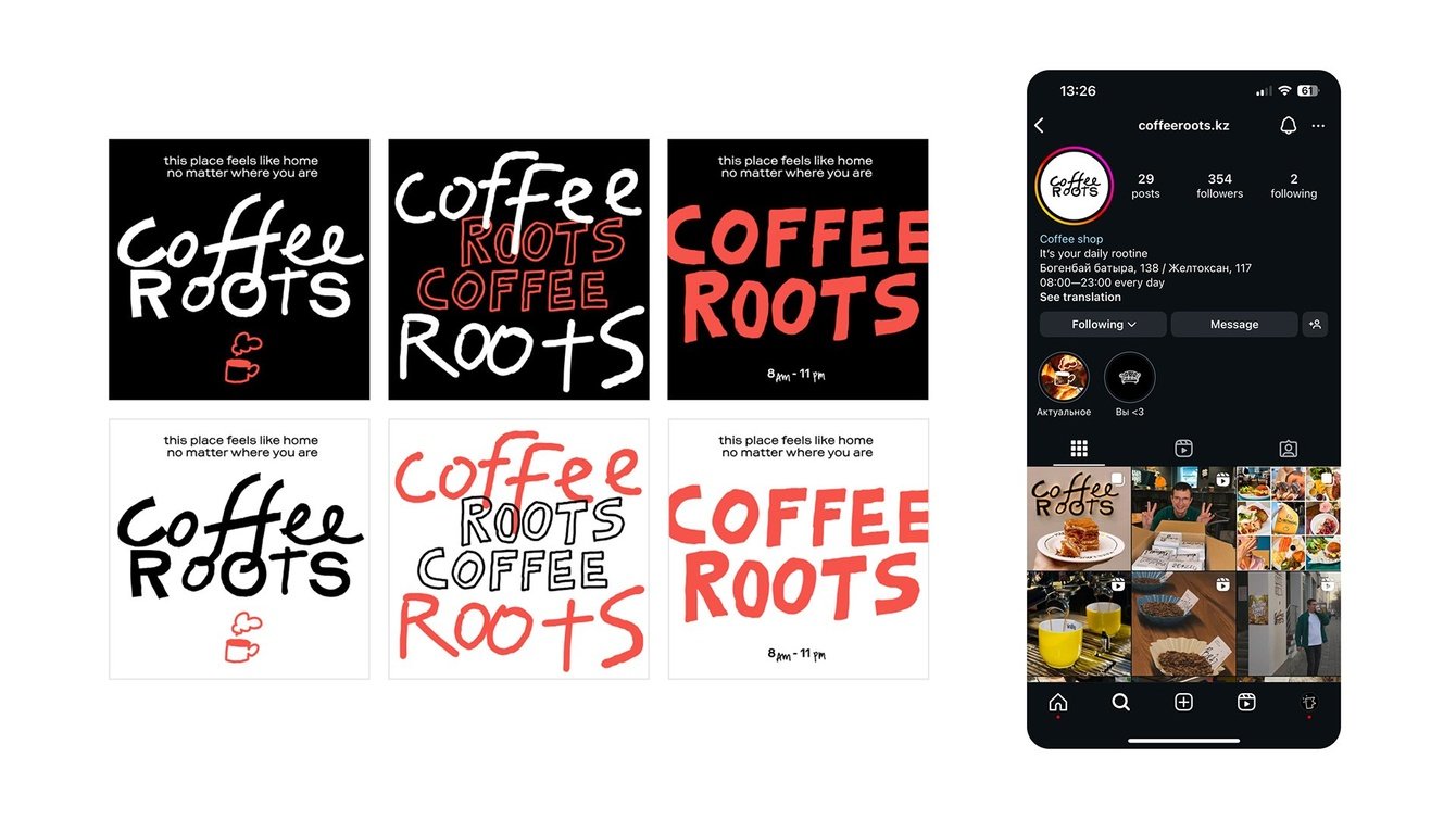 Мы предложили новое имя — Coffee Roots. Оно понравилось заказчику и ярче отражало идею бренда и его многогранность.